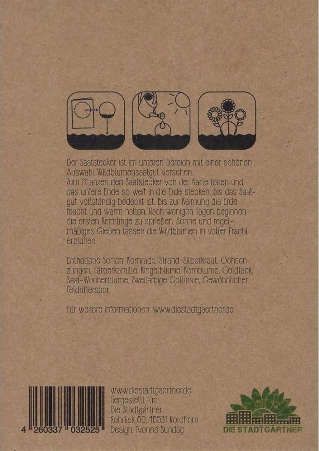Jedinečná přání od Die Stadtgärtner jsou vyráběna s láskou ručně a jsou výjimečným dárkem pro výjimečné lidi. Každé přání obsahuje ručně čerpaný semínkový papír, který se po zasetí promění v nádherné divoké květiny. Individuálně navržená přání tak potěší nejen svým skvělým designem, ale také malým tajemstvím, které v sobě každé z nich ukrývá.