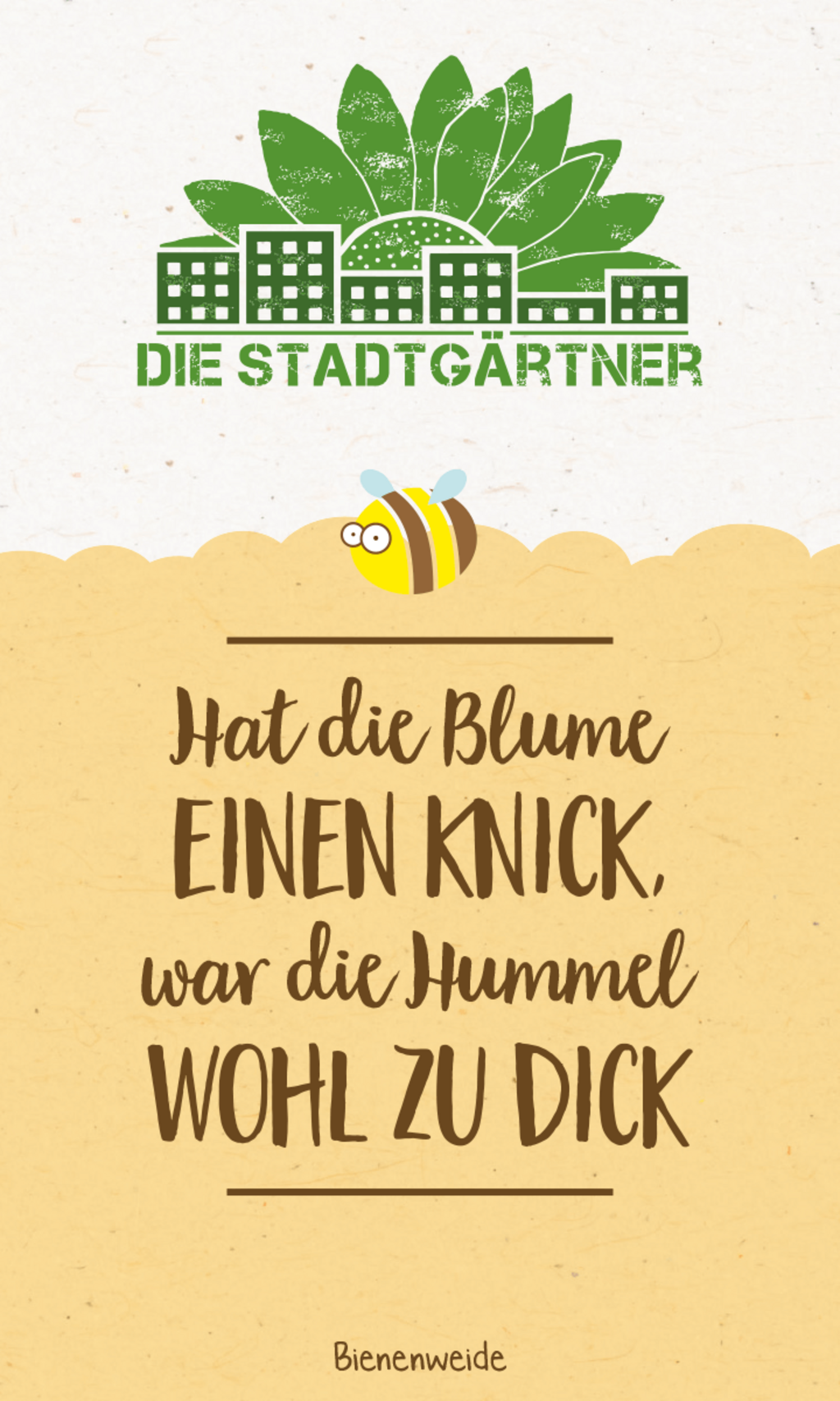 Krásné květinové přání, které vykouzlí úsměv na tváři obdarovaného nejen díky vtipnému nápisu. Díky obsaženým semenům květin a bylinek vyroste během chvilky pestrobarevná louka, která potěší především čmeláky, včely a motýly.