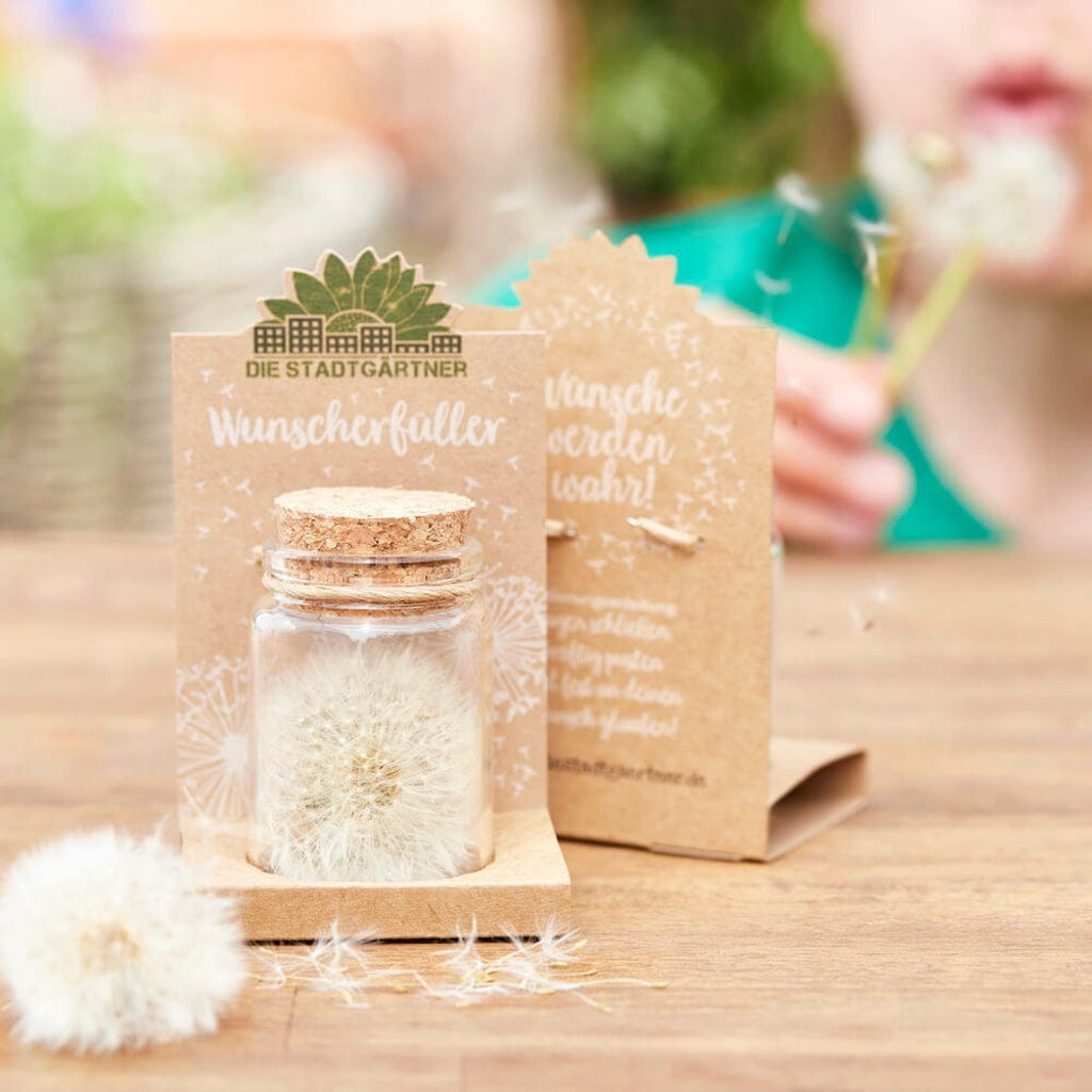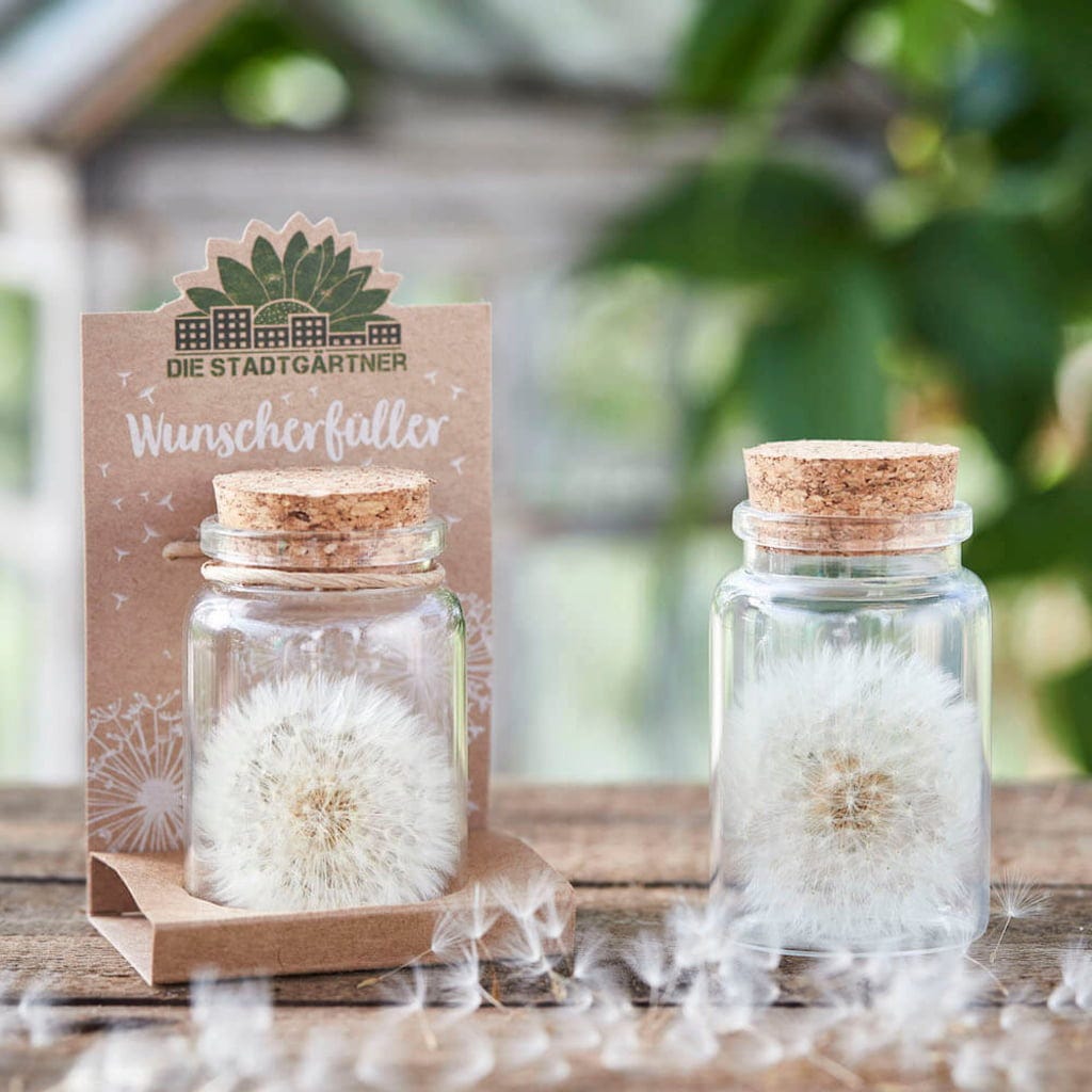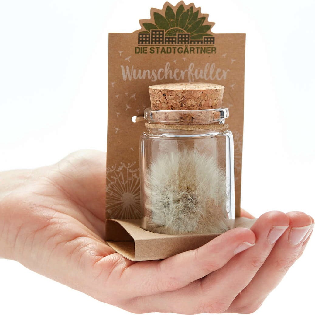 - Sklenice obsahuje pravou pampelišku s cca 100 přáními