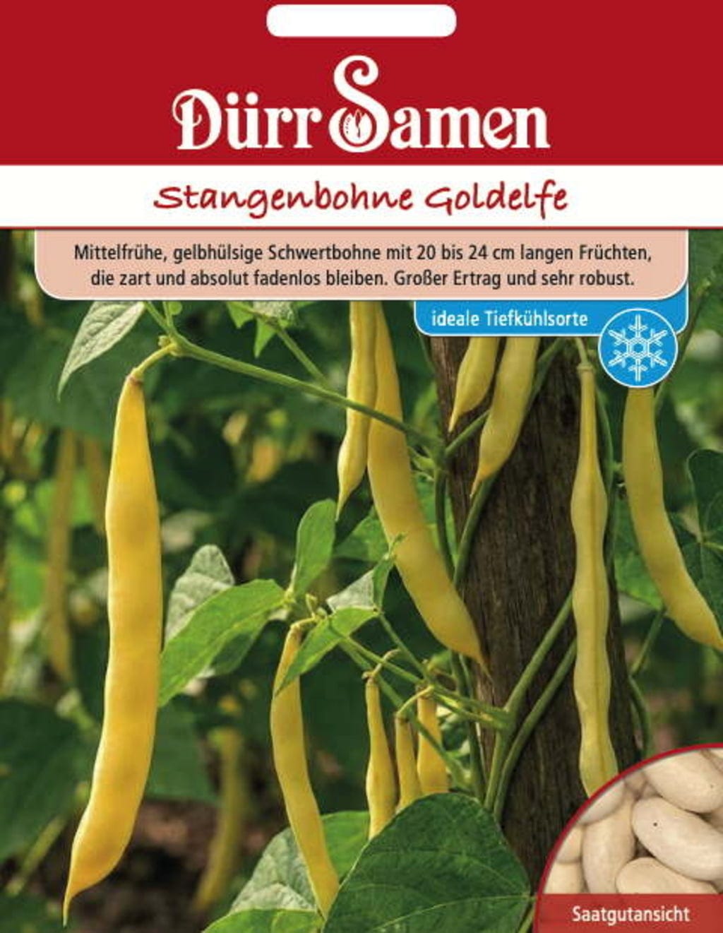 Tyčková fazole „Goldelfe“ je středně raná, velmi výnosná odrůda s dlouhými, jemnými fazolkami. Hodí se všestranně do zeleninových jídel, salátů nebo ke konzervaci a zamrazení. Rostlina je odolná vůči chorobám fazolí a prospívá na slunných, teplých a před větrem chráněných stanovištích.