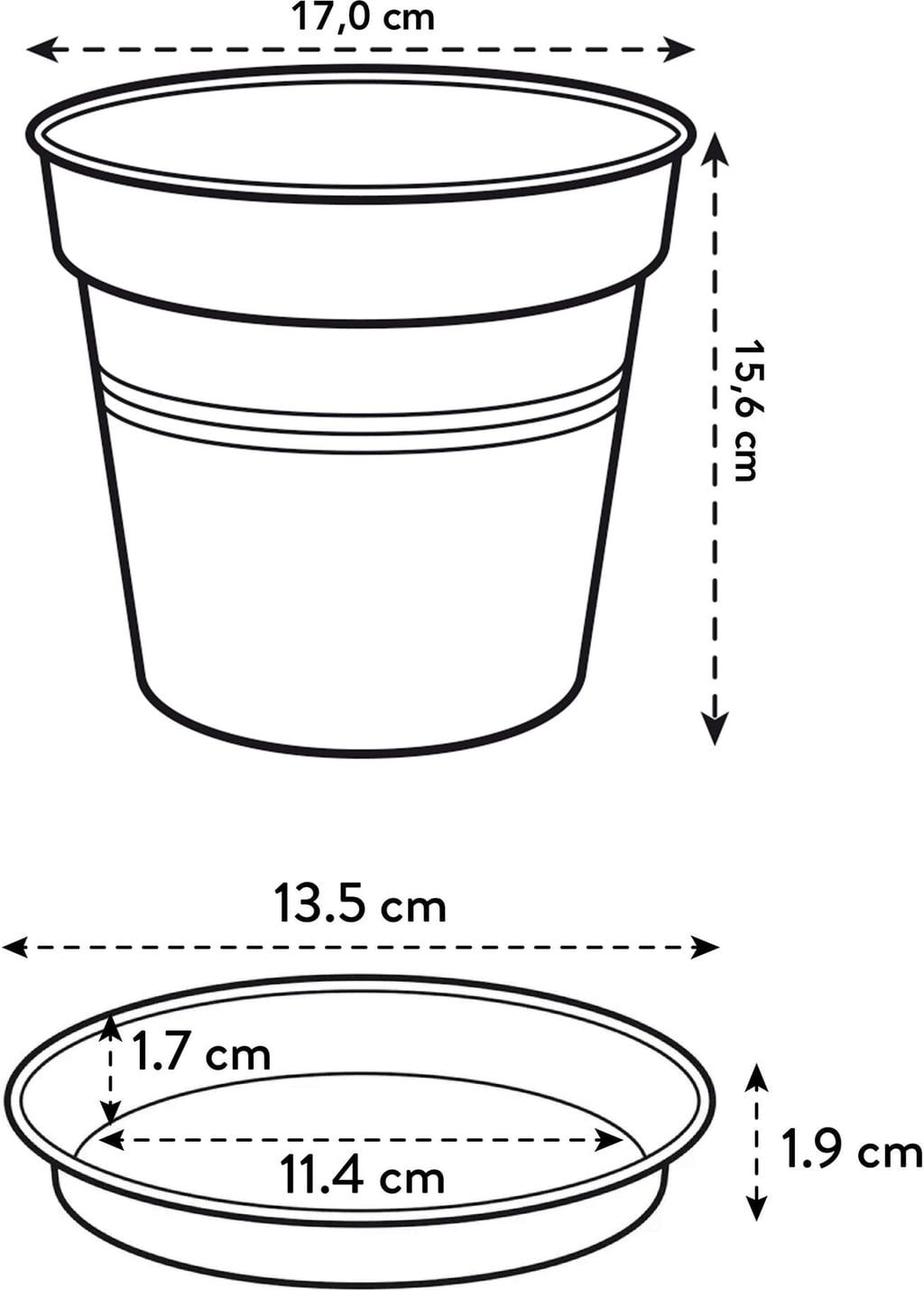 elho Sada květináče s podmiskou „Green Basics Growpot“ - sytě černá, 17 cm + 14 cm