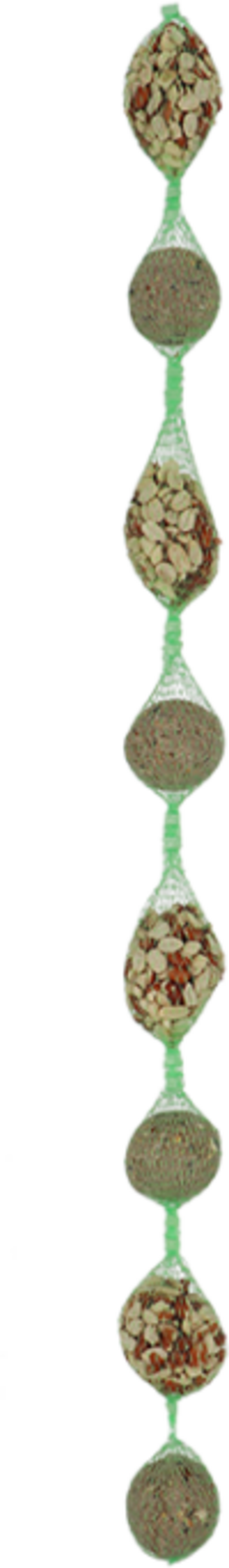 Řetěz s lojovými koulemi a arašídy je praktickým způsobem, jak přikrmovat ptáky ve Vaší zahradě. Tento typ krmiva si oblíbily především sýkory a další volně žijící ptáci, kteří si rádi pochutnají na výživných arašídech a lojových koulích.