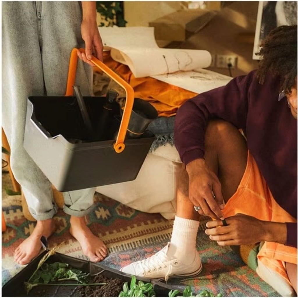 Protože je nepropustný, je ideální pro míchání zeminy a substrátů, zatímco integrovaná vnitřní nádoba je ideální pro ukládání menších předmětů, jako jsou nůžky, lopatky a sáčky se semeny. Nádoby lze vyjmout a úložný box má navíc speciální otvory, takže jej lze namontovat na stěnu.