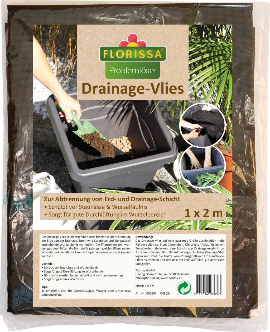 Přemokření a hniloba kořenů budou minulostí! Tato drenážní textilie zajišťuje čisté oddělení zeminy a drenážní vrstvy v pěstebních nádobách. Kořenová oblast tak zůstává dobře provzdušněná, živiny se rovnoměrně rozdělují a Vaše rostliny se mohou optimálně vyvíjet.
