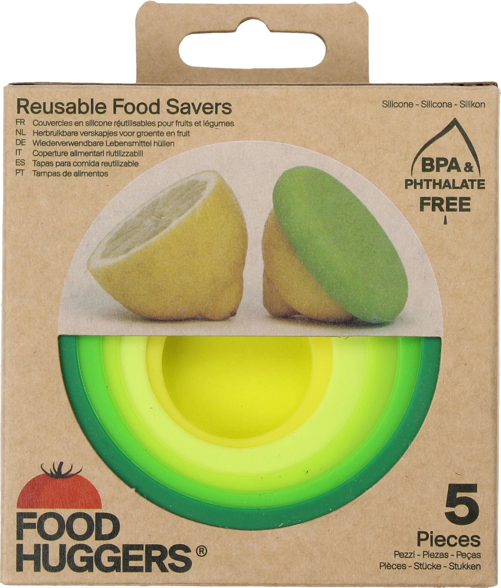 Proměňte (téměř) jakoukoliv nádobu ve Vaší kuchyni na misku na potraviny – bez použití ekologicky škodlivého plastu nebo hliníkové fólie. Flexibilní silikonová víčka na potraviny můžete jednoduše přetáhnout přes nádobu (průměr 3,5 cm - 10,5 cm) nebo je přetáhnout přímo přes odříznutý konec ovoce nebo zeleniny. Ztráta vlhkosti v potravinách se výrazně sníží a zbytky zůstanou déle čerstvé. Po použití můžete silikonová víčka bez BPA jednoduše umýt, osušit a znovu použít. Food Huggers dokonce nabízí doživotní záruku!