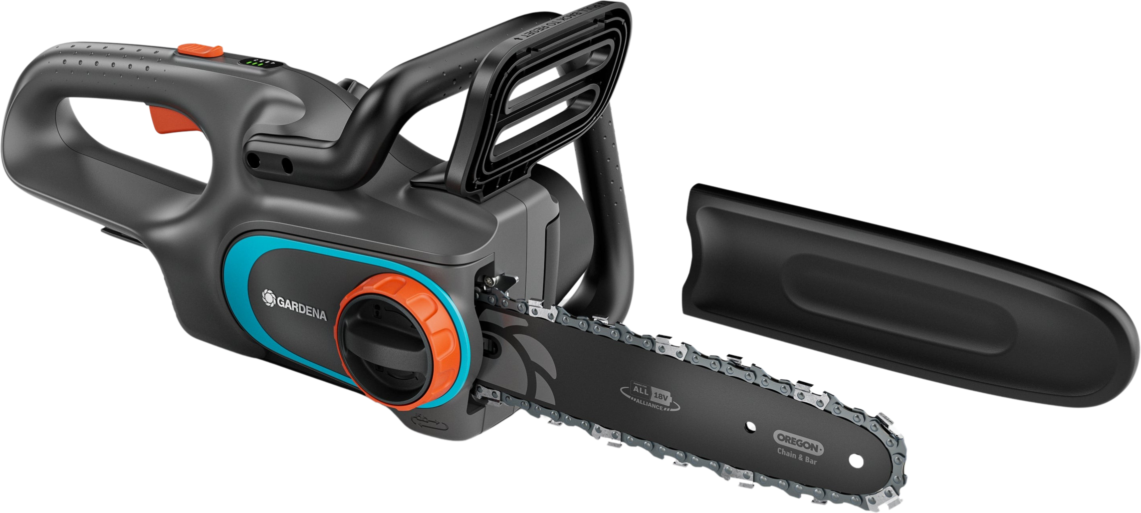 Rozsah dodávky: 1x řetězová pila GARDENA PowerSaw 250/18V Solo (akumulátor a nabíječka nejsou součástí balení)