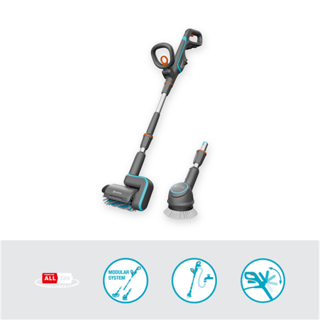 - 1 x GARDENA akumulátorový víceúčelový čistič Aqua Brush Universal 04/18V P4A solo \n\t