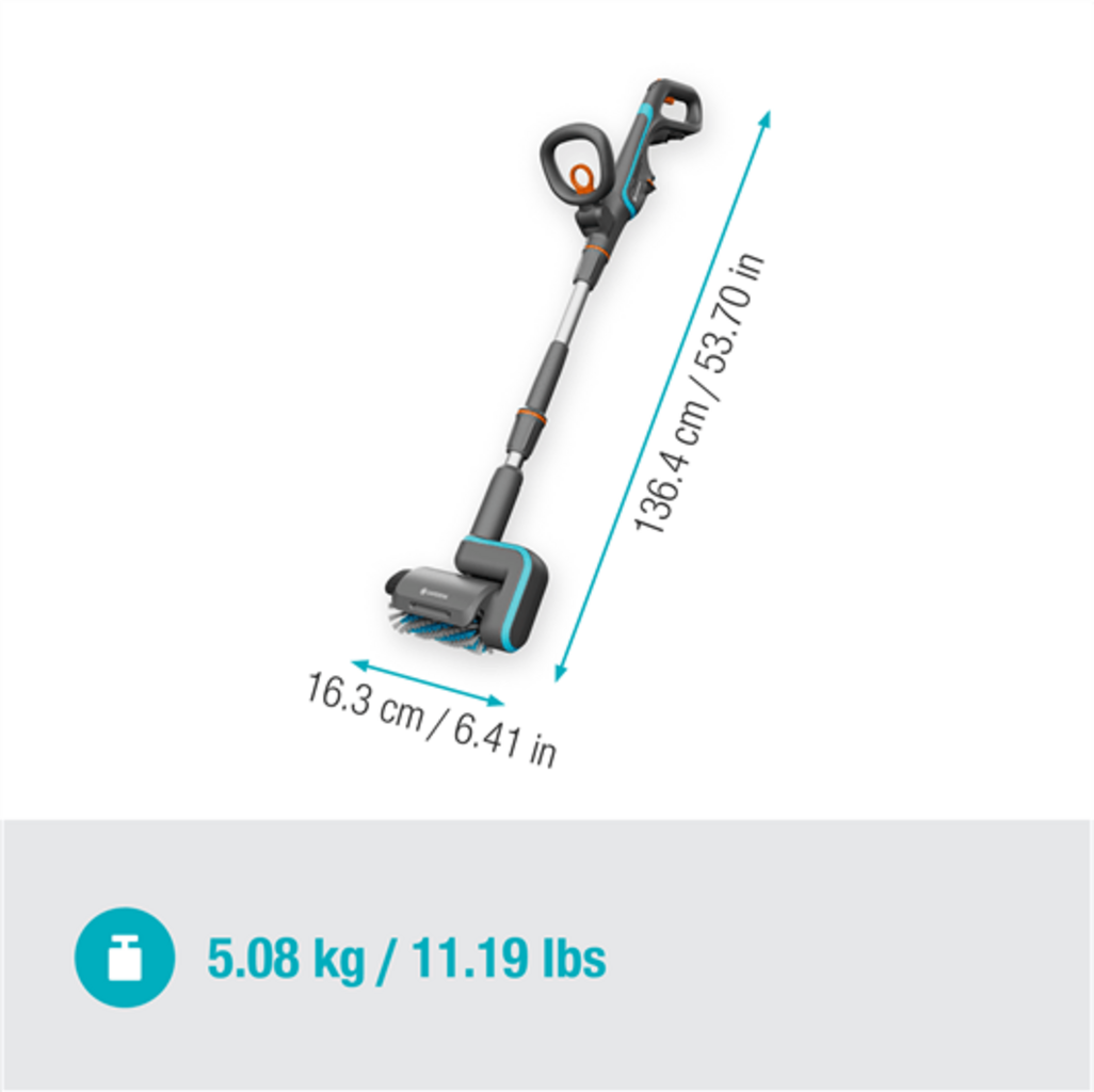 Objevte GARDENA akumulátorový víceúčelový čistič AquaBrush Universal Solo – dokonalé řešení pro venkovní čištění.