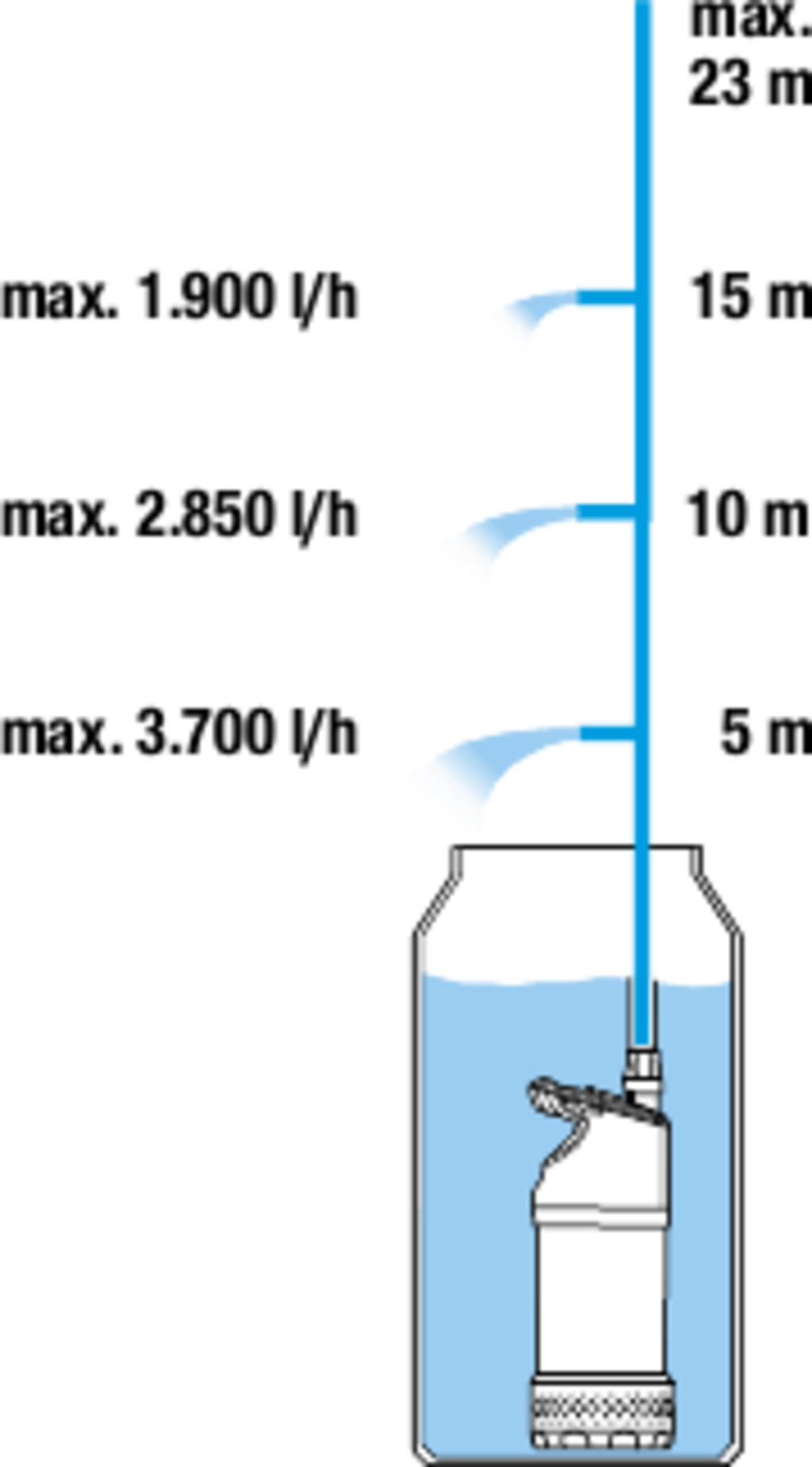 - Maximální výtlačná výška: 23 m