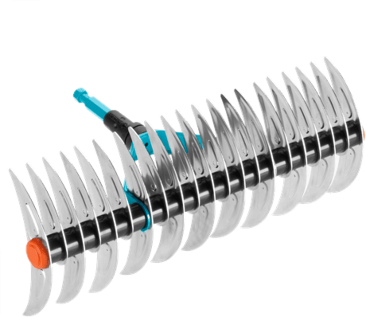 Různé nože umístěné na hrábích jsou určeny pro různé aplikace. Se špičatými hroty můžete odstranit mech a travní plsť a otočením přístroje můžete díky kulatým, hustě uspořádaným hrotům shrabat zahradní odpad. Dva v jednom – geniální!