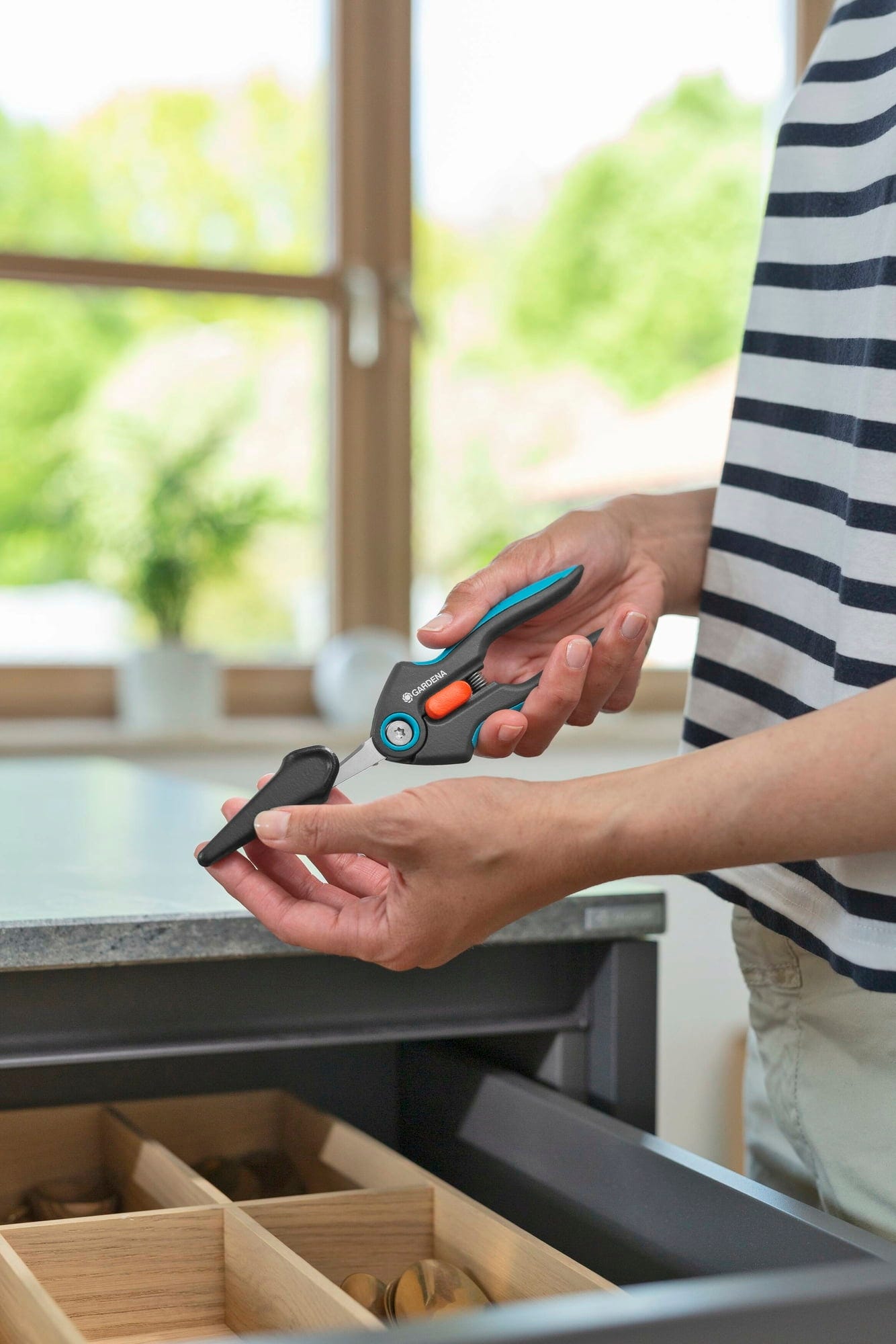 Ať už jde o sklizeň jemných bylinek nebo řezaných květin – zahradní nůžky FreshCut od značky GARDENA se svými ostrými čepelemi z nerezové oceli vždy zajistí čistý řez. Při čištění lze nůžky dokonce mýt v myčce nádobí a následně je bezpečně uzamknout a optimálně uložit s ochranným krytem.
