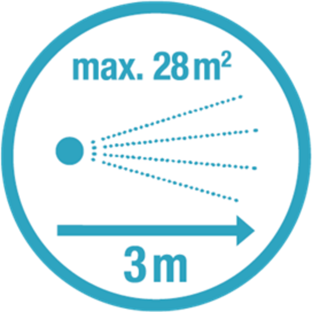 | 360° rozprašovací tryska | 3 m | 28 m² |