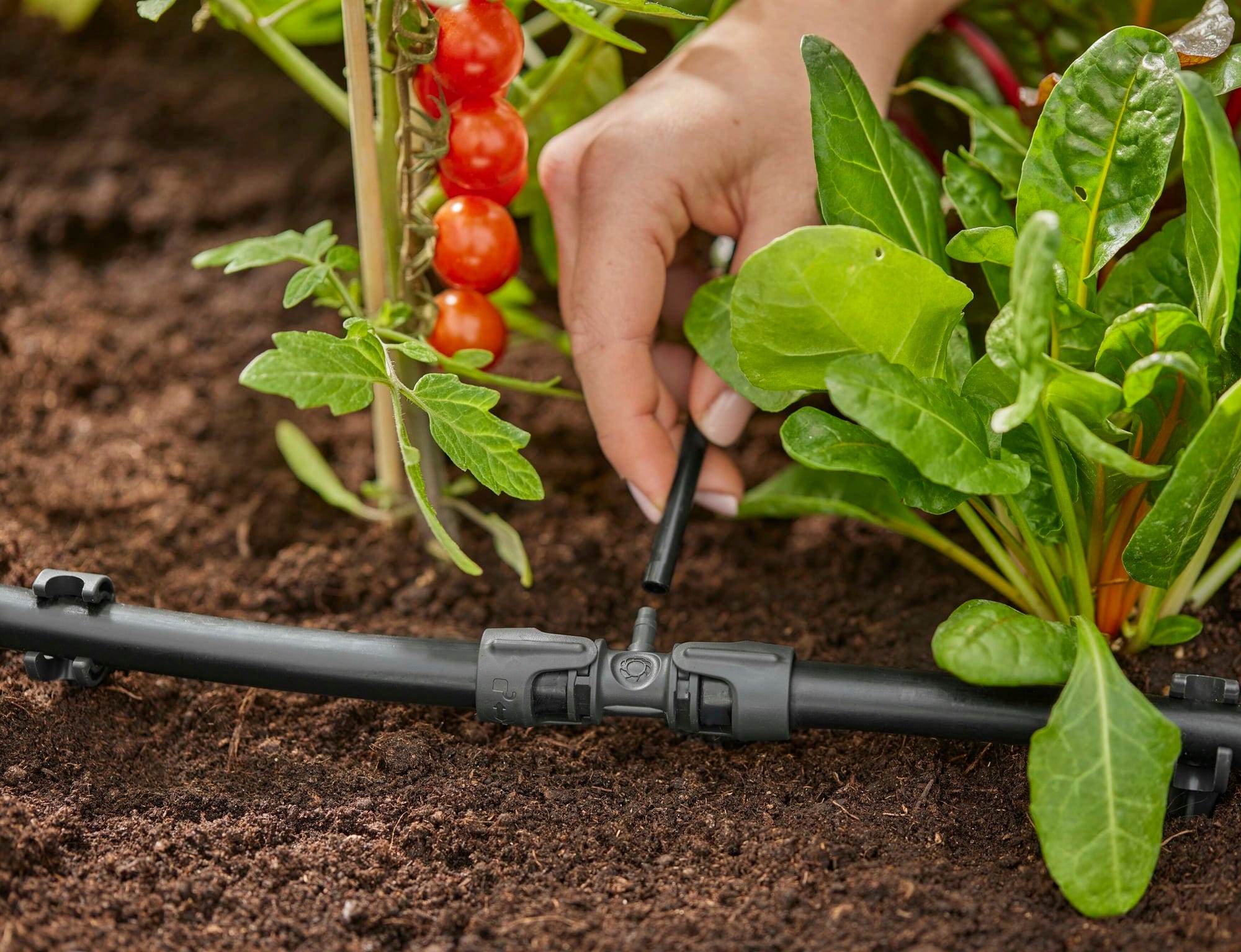 S Micro-Drip-System T-kusem vytvoříte přechod z 13 mm propojovací trubky na 4,6 mm rozdělovací trubku. T-kus je obzvláště užitečný, pokud chcete vytvořit odbočky k záhonům nebo květináčům. Instalace je díky značení snadná a intuitivní. Spoje jsou bezpečně uzavřeny, jakmile uslyšíte cvaknutí.
