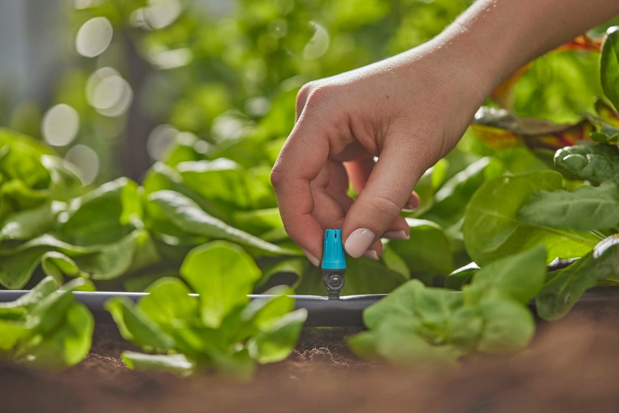 Trysky pro malé plochy Micro-Drip-System jsou obzvláště vhodné pro celoplošné zavlažování malých ploch, jako jsou květinové nebo zeleninové záhony. Poloměr lze intuitivně nastavit na rozprašovací hlavě v rozmezí 10 až 40 cm. Případné nečistoty lze rychle a snadno odstranit pomocí integrované čisticí jehly.
