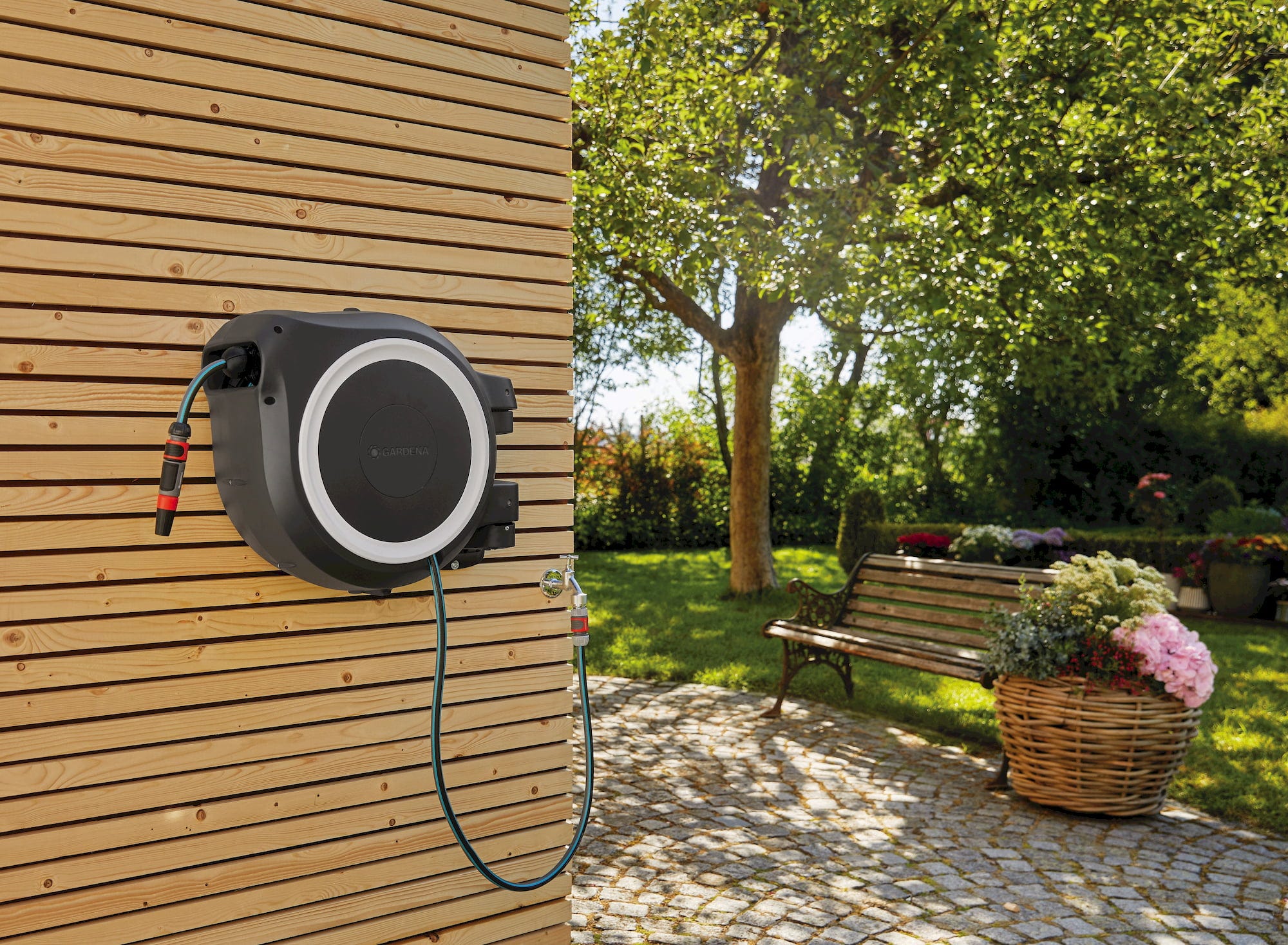 Také Vás nebaví tahat zahradní hadici ze sklepa nebo ze zahradního domku? Tento skvělý box na hadici představuje flexibilní řešení této záležitosti. Stačí box namontovat na stěnu pomocí držáku a hadici budete mít vždy po ruce, aniž byste ji po použití museli znovu odnášet. Hadice se navíjí bez námahy a bez zamotání, box je otočný o více než 180 ° a díky vysoké kvalitě je zaručeně bezúdržbový. Jednoduše geniální.
