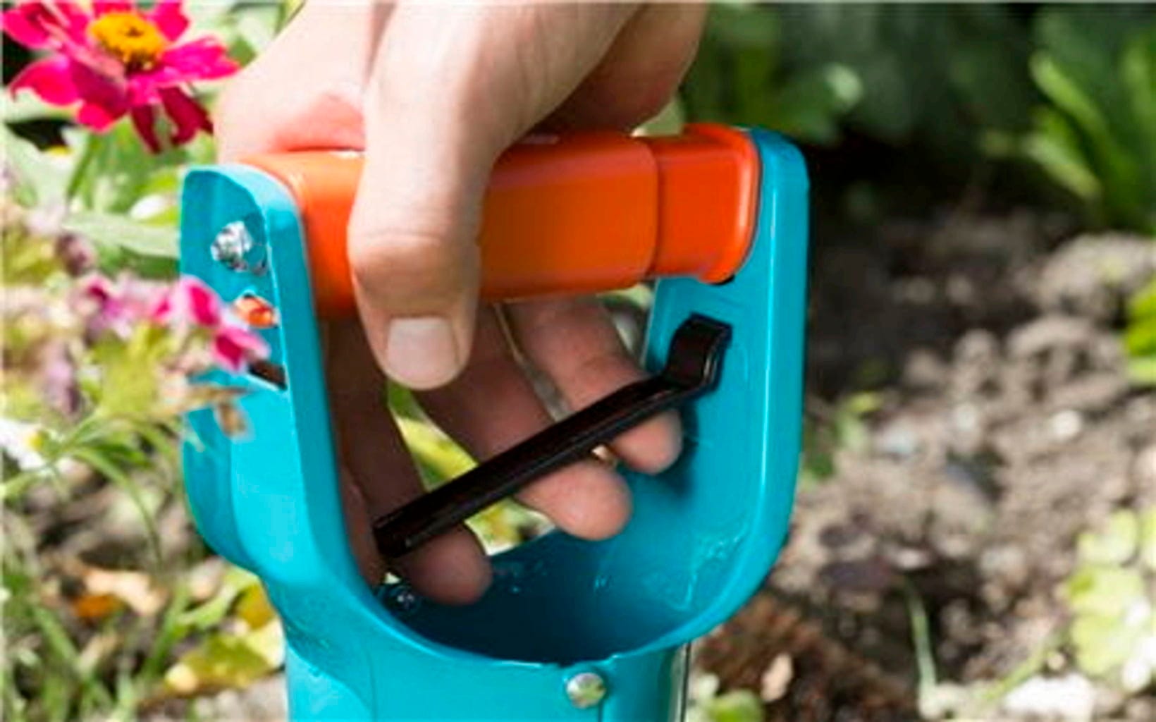 Se sazečem cibulovin od značky GARDENA zasadíte květinové cibulky během okamžiku. Díky automatickému uvolňování na rukojeti je zemina efektivně odtlačována stranou. Hloubková stupnice zajišťuje přehlednost. Díky vysoce kvalitním materiálům z jakostní oceli a povlaku Duroplast je nástroj optimálně chráněn proti korozi.