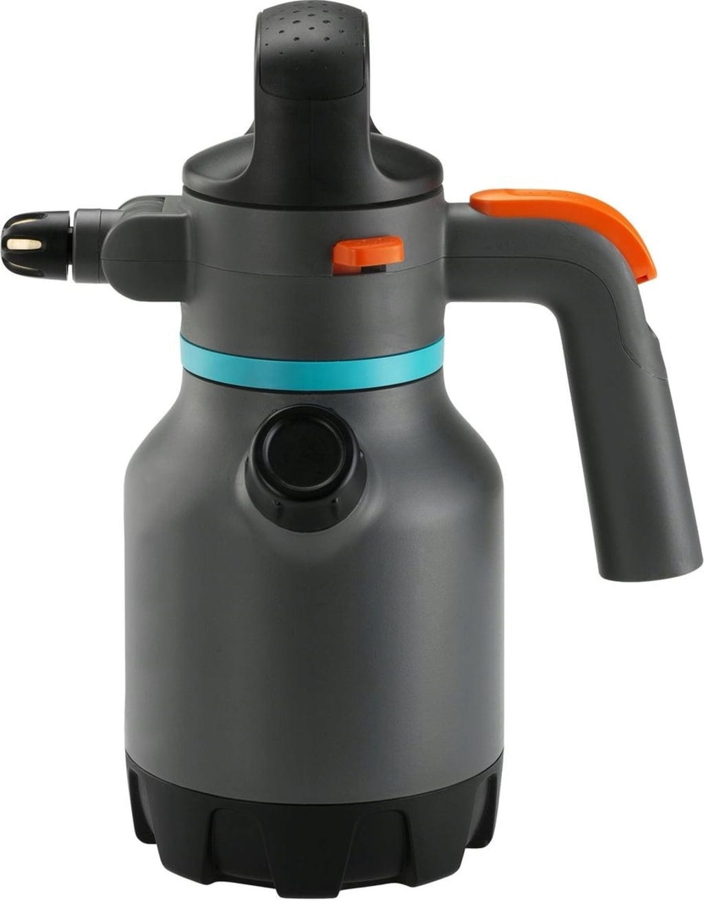 Tlakový postřikovač je vyroben z plastu. Na začátku použití se v postřikovači vytvoří tlak, aby bylo možné rostliny postřikovat pouhým stisknutím tlačítka. Druhý otvor umožňuje snadné plnění, míchání a vyprazdňování. Víko slouží jako dávkovací uzávěr pro hnojiva nebo přípravky na ochranu rostlin. Speciální silikonová hadička se závažím zabraňuje nasávání vzduchu, takže pumpovací postřikovač funguje i v šikmé poloze. Možnost vložení filtru pro plnění vlastních výluhů. S vysoce kvalitní mosaznou tryskou, nastavitelnou o 90 °, pro postřik spodní strany listů. Moderní design, vysoká kvalita a promyšlená funkčnost – pro univerzální použití. Geniální.