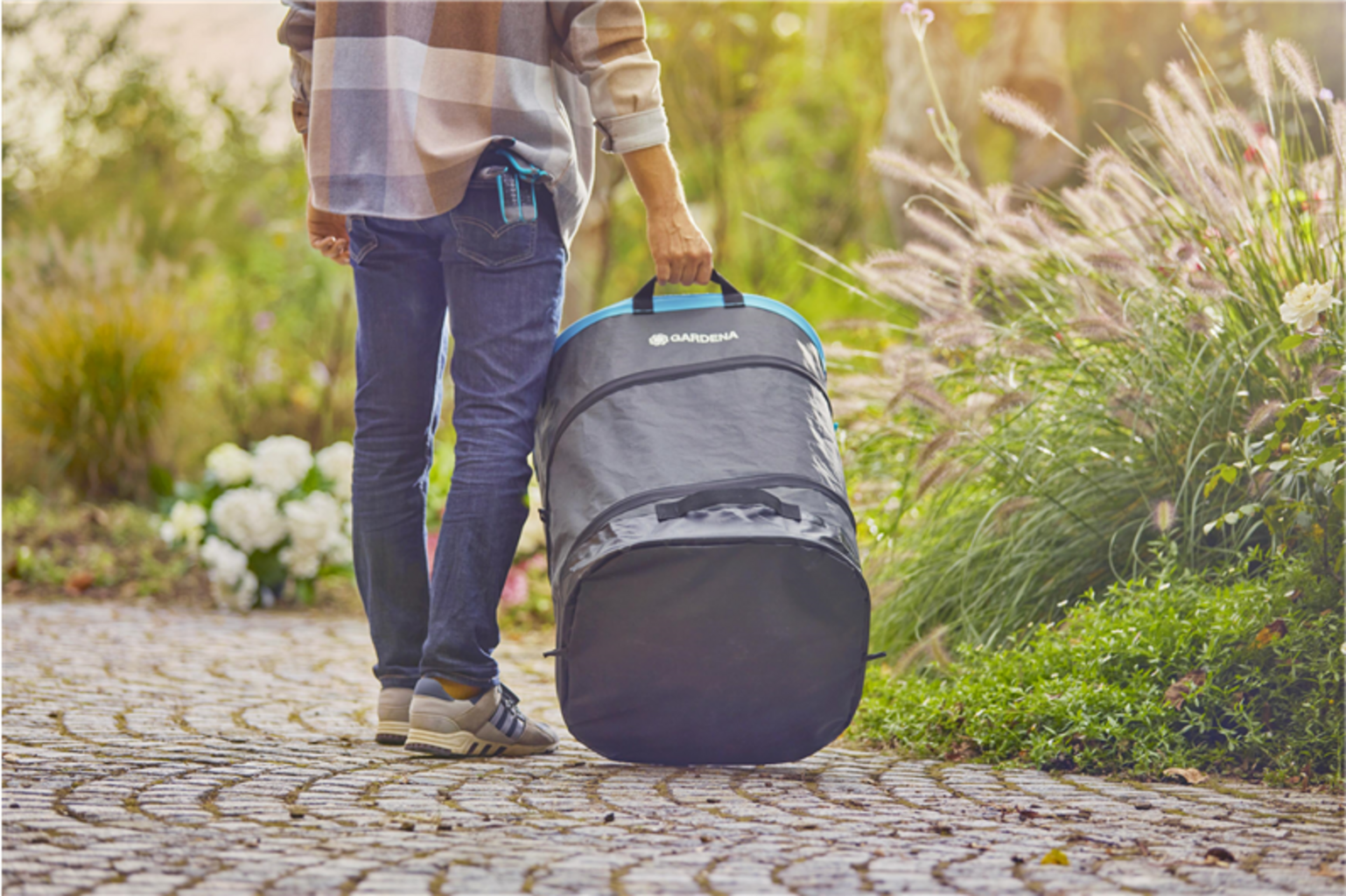 Skládací zahradní pytel na odpad PopUp obdélníkový nabízí mnoho praktických funkcí, které dělají ze sběru odpadu na Vaší zahradě snadný úkol. Díky svému obdélníkovému tvaru lze pytel na odpad položit na bok, což umožňuje ergonomické shrabování odpadu. Navíc nabízí tři různé výškové úrovně, od zcela rozloženého až po úplně plochý stav. Díky tomu je flexibilně přizpůsobitelný Vašim různým potřebám a v případě, že jej nepotřebujete, jej lze prostorově úsporně uložit.