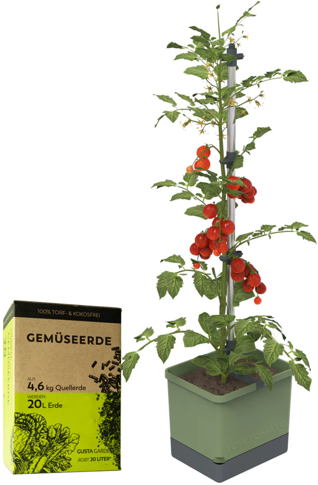 GUSTA GARDEN TOM TOMATO s půdou, Tmavě zelená