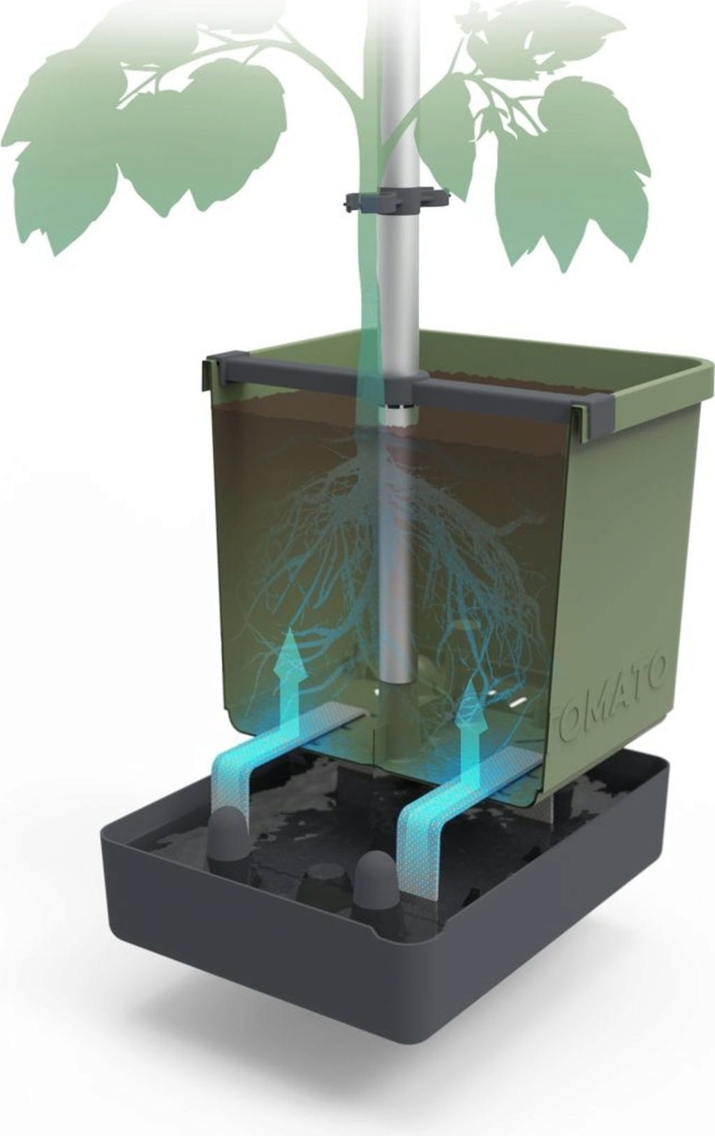 Pěstební nádoba TOM TOMATO se vyznačuje promyšlenou konstrukcí s integrovaným zásobníkem na vodu, která rajčatům poskytuje vhodné podmínky pro růst a zároveň vám usnadňuje péči.