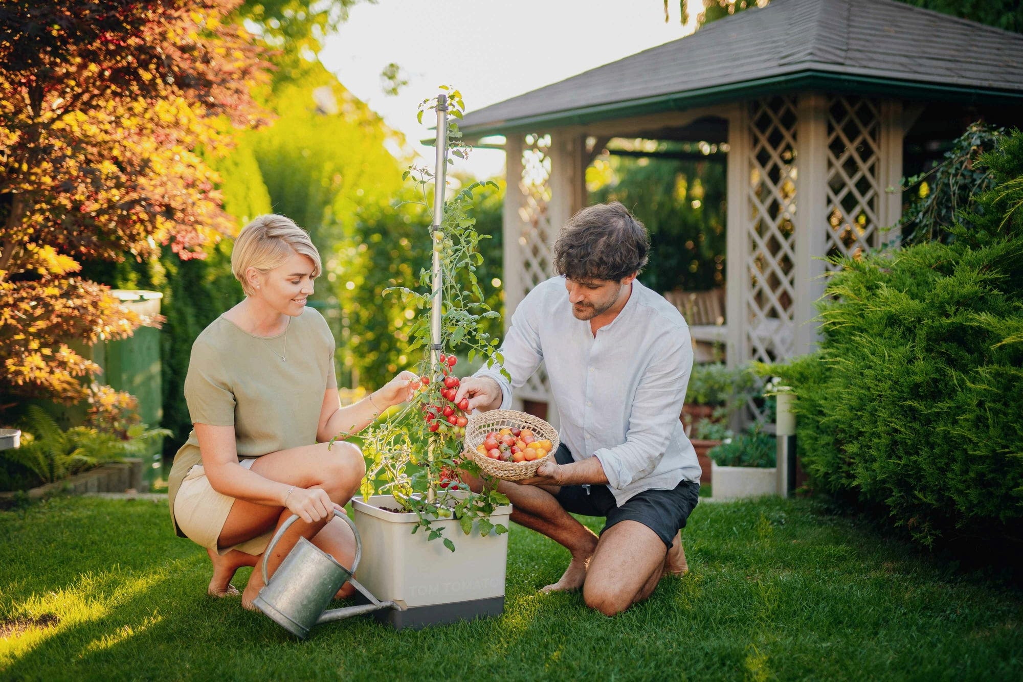 Díky inovativní konstrukci skládající se z pěstební nádoby, zásobníku na vodu, opory pro popínání a integrovaného zavlažovacího systému je TOM TOMATO spolehlivým pomocníkem při pěstování vlastních rajčat. Stačí jen každých několik dní doplnit zásobník vodou a brzy se můžete těšit na čerstvá, šťavnatá rajčata. Tak chutná léto.