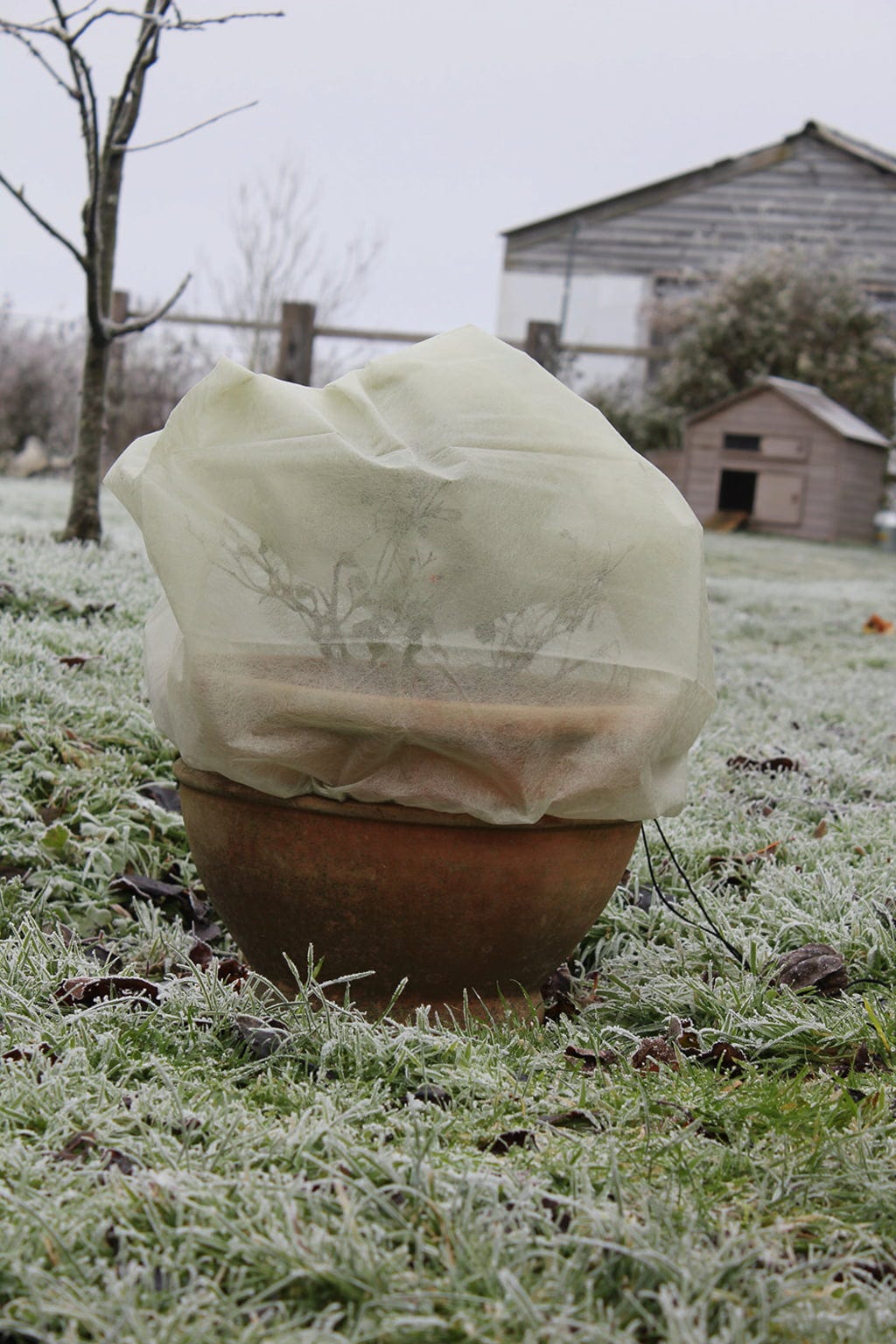 Ochranné vaky Easy Fleece se obzvláště snadno používají a poskytují Vašim rostlinám pečlivou ochranu před mrazem a jinými nepříznivými povětrnostními vlivy. Vak jednoduše přetáhněte přes rostlinu a upevněte jej pomocí integrované stahovací šňůrky kolem základny. Netkaná textilie je vyrobena z polypropylenu o gramáži 35 g/m2, propouští světlo a zajišťuje ideální klima pro růst.