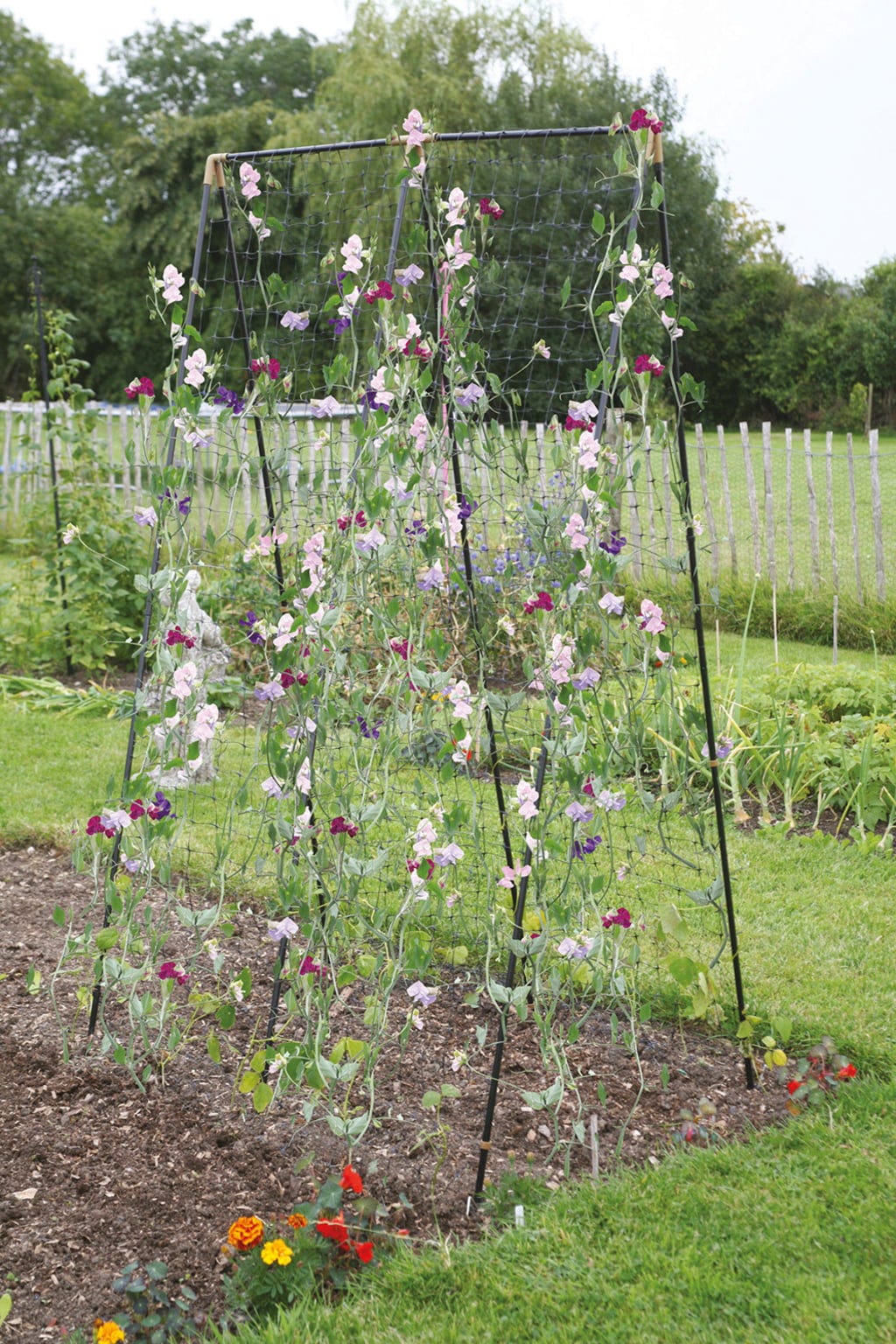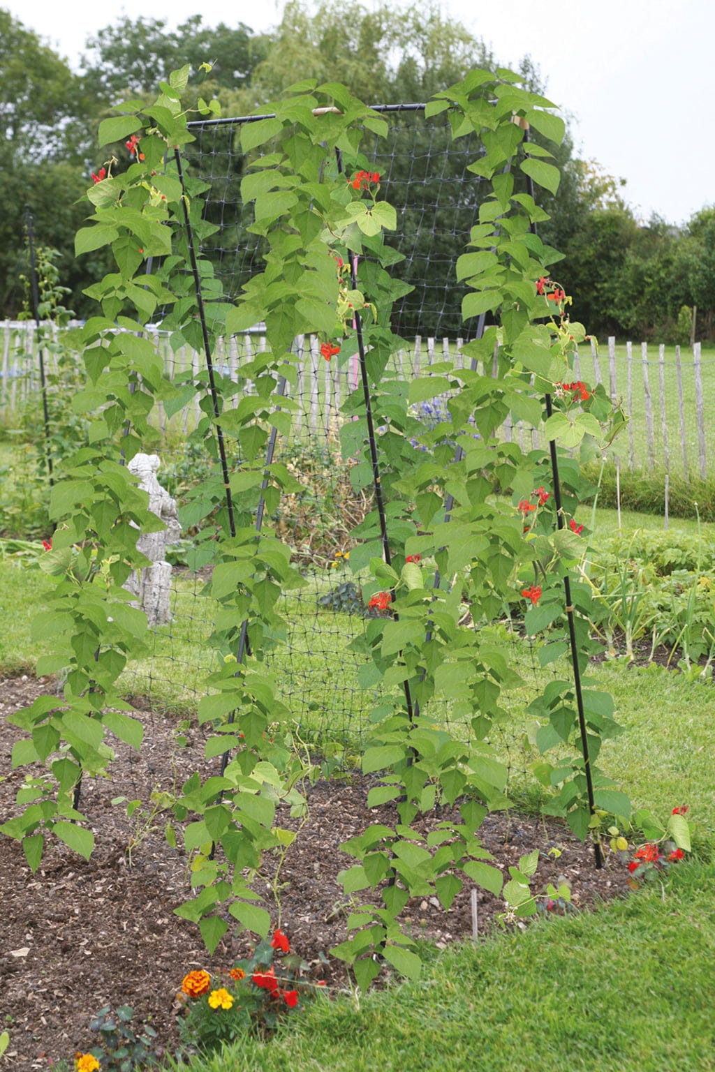 S touto opěrou mohou Vaše tyčkové fazole, cukrový hrášek, hrách, okurky a jakékoli jiné druhy popínavých rostlin začít bez obav růst. Ocelové rámy lze díky patentovaným kloubům „push-fit“ sestavit rychle a snadno. Vše, co pak musíte udělat, je připevnit k rámu síť s oky 10 cm², která je součástí dodávky. Vaše popínavé rostliny tak mohou snadno a jednoduše šplhat vzhůru.