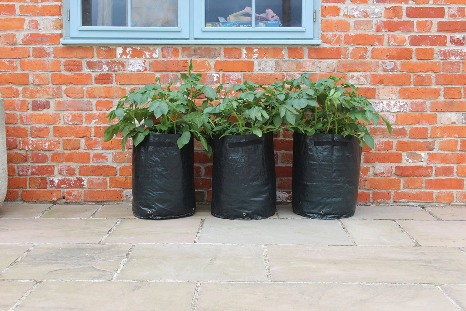 Od nynějška si může každý vypěstovat vlastní chutné domácí brambory, i když nemáte zahradu. Pěstební tašky na brambory jsou speciálně navrženy pro použití na terasách a balkonech, mají objem 40 l a jsou tak vhodné pro 3-5 sadbových brambor. Materiál je vyroben z pevného barevného polyethylenu, má zesílené drenážní otvory v základně a rukojeť na každé straně.