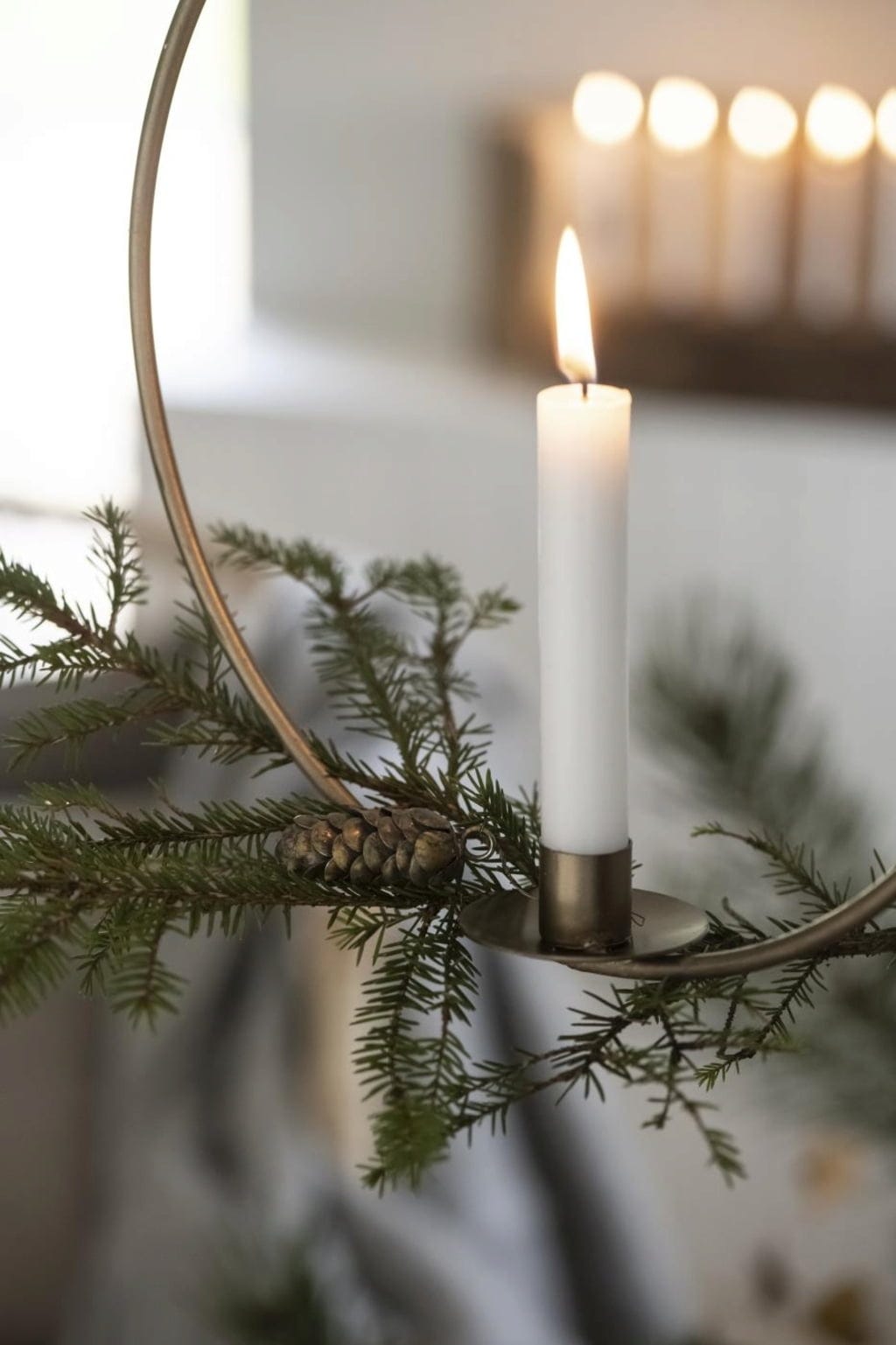 Kulatý závěsný svícen slibuje obzvláště jedinečnou dekoraci. Díky dlouhému řetězu a malému kroužku jej můžete snadno připevnit a následně do něj umístit tyčovou svíčku. Ještě osobitějšího vzhledu dosáhnete, pokud svícen navíc ozdobíte chvojím, stuhami nebo jiným dekoračním materiálem.