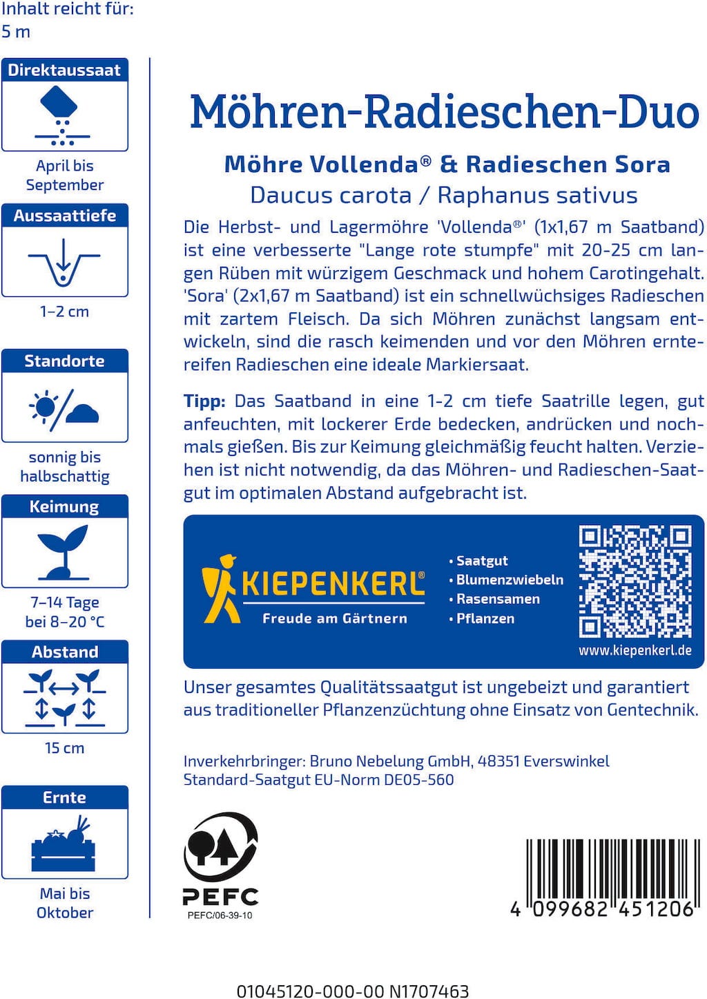 Kiepenkerl Duo mrkev Vollenda® & ředkvička Sora 100,00 Kč (8 928,57 Kč / kg)