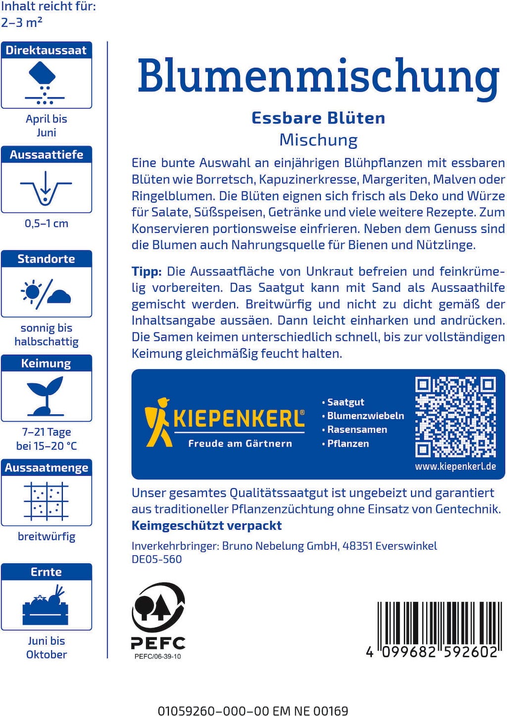 Kiepenkerl Květinová směs Jedlé květy 90,00 Kč (8 823,53 Kč / kg)