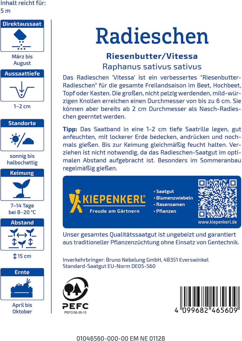 Kiepenkerl Ředkvička Obří máslová / Vitessa, osivový pásek