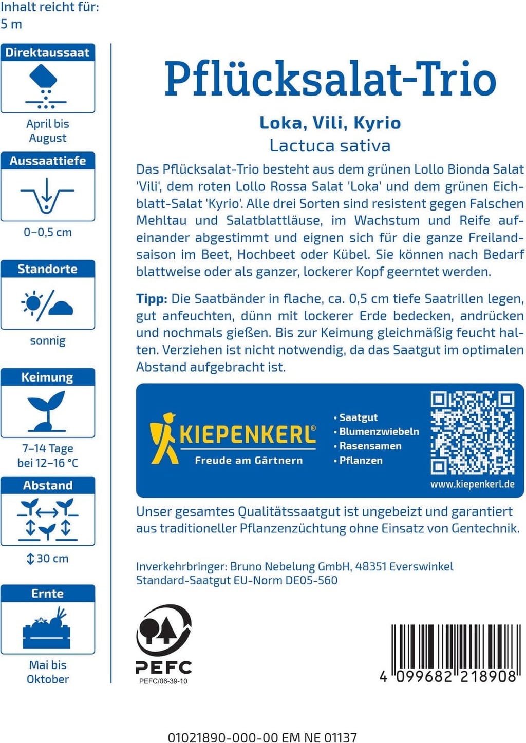 hodnocení pro Kiepenkerl Trio listových salátů „Loka, Vili, Kyrio“ na osivovém pásku (čeština)