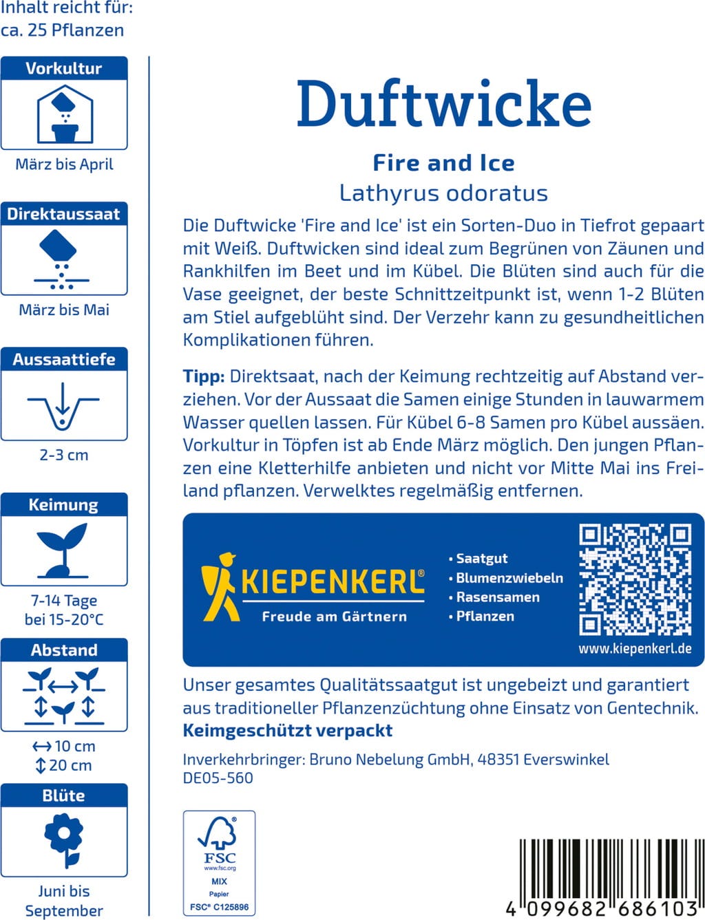 hodnocení pro Kiepenkerl Vonný hrachor „Fire and Ice“ (čeština)