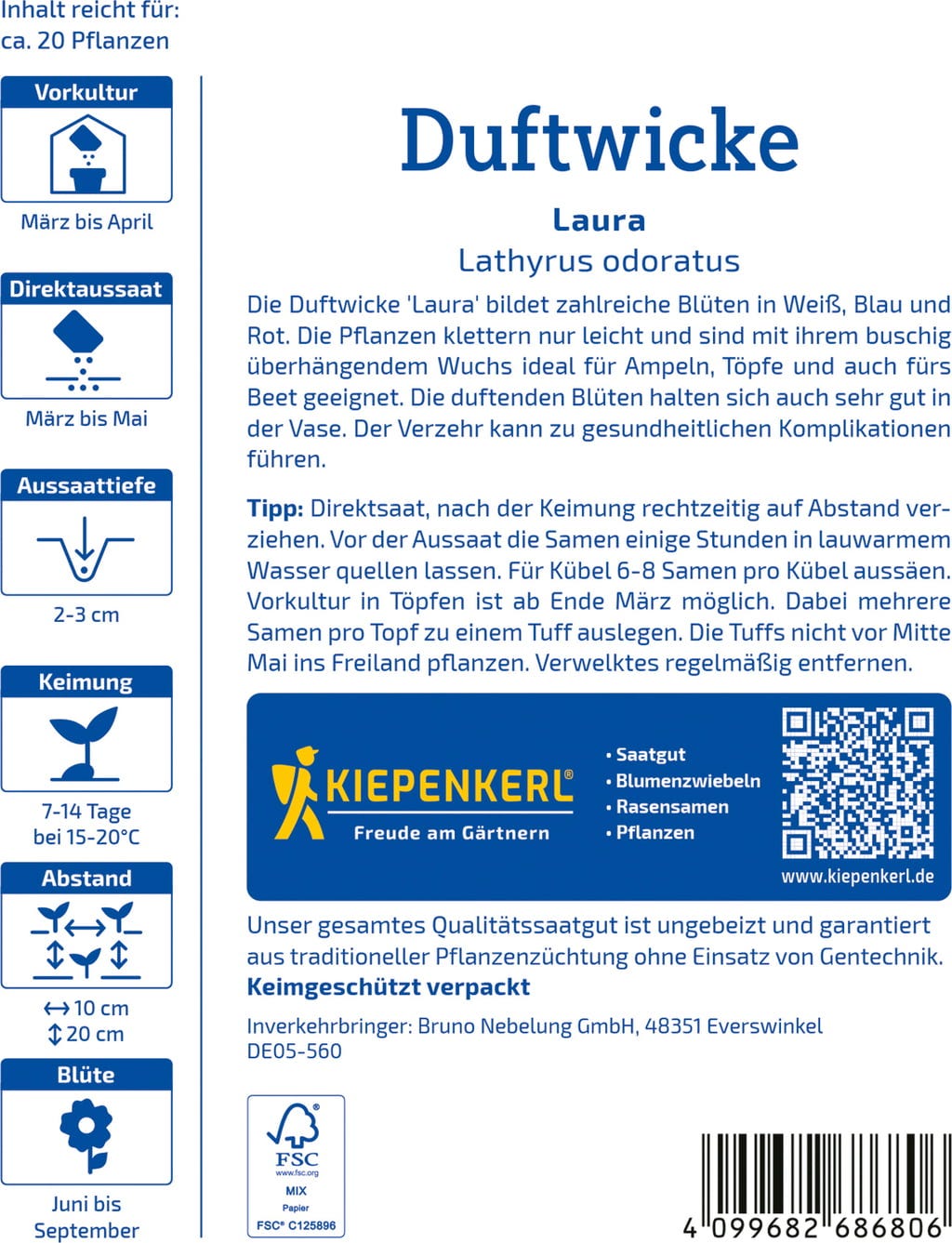 Kiepenkerl Vonný hrachor Laura 90,00 Kč (8 823,53 Kč / kg)