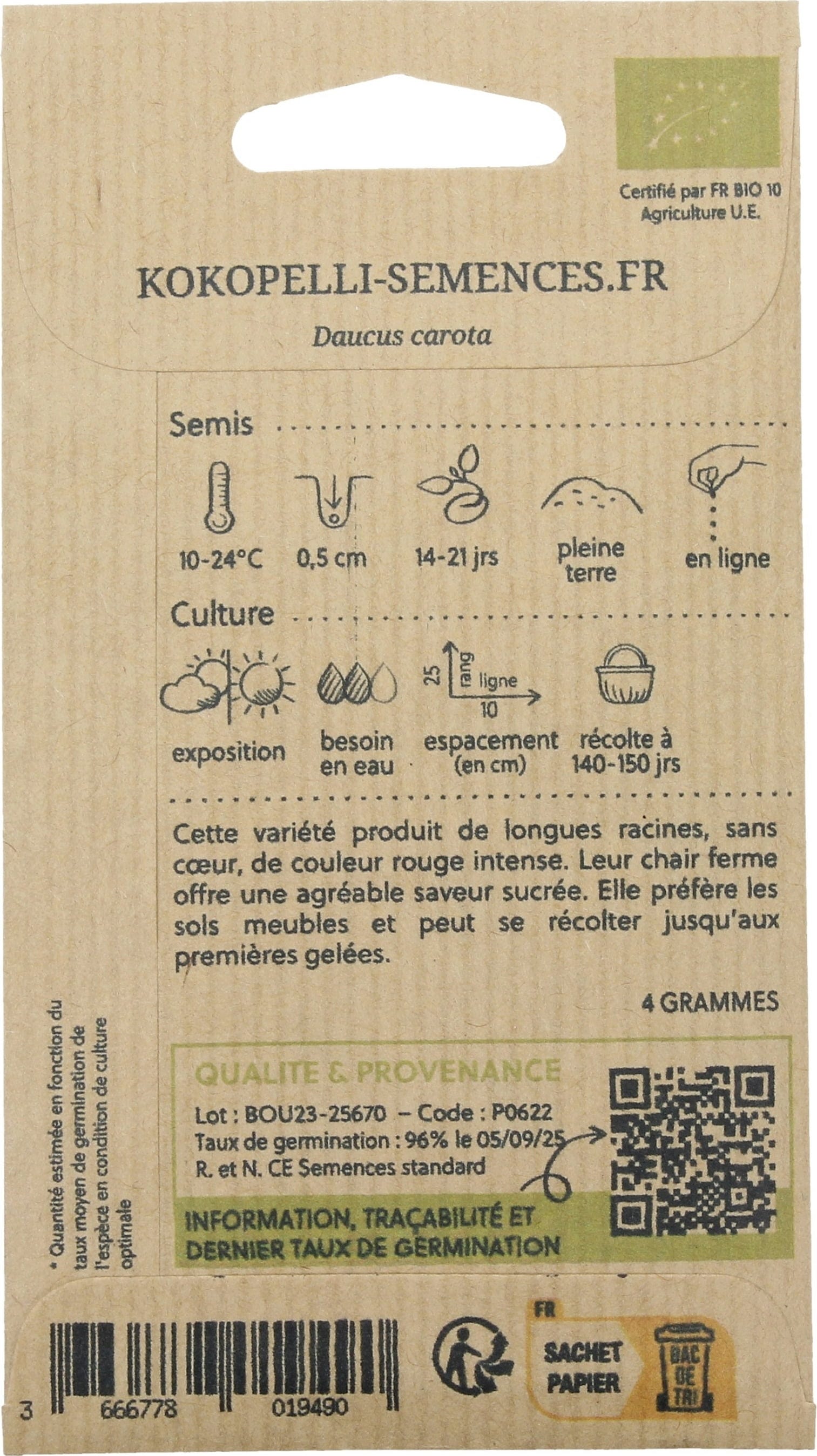Kokopelli Bio červená mrkev „Berlicum“, 4 g