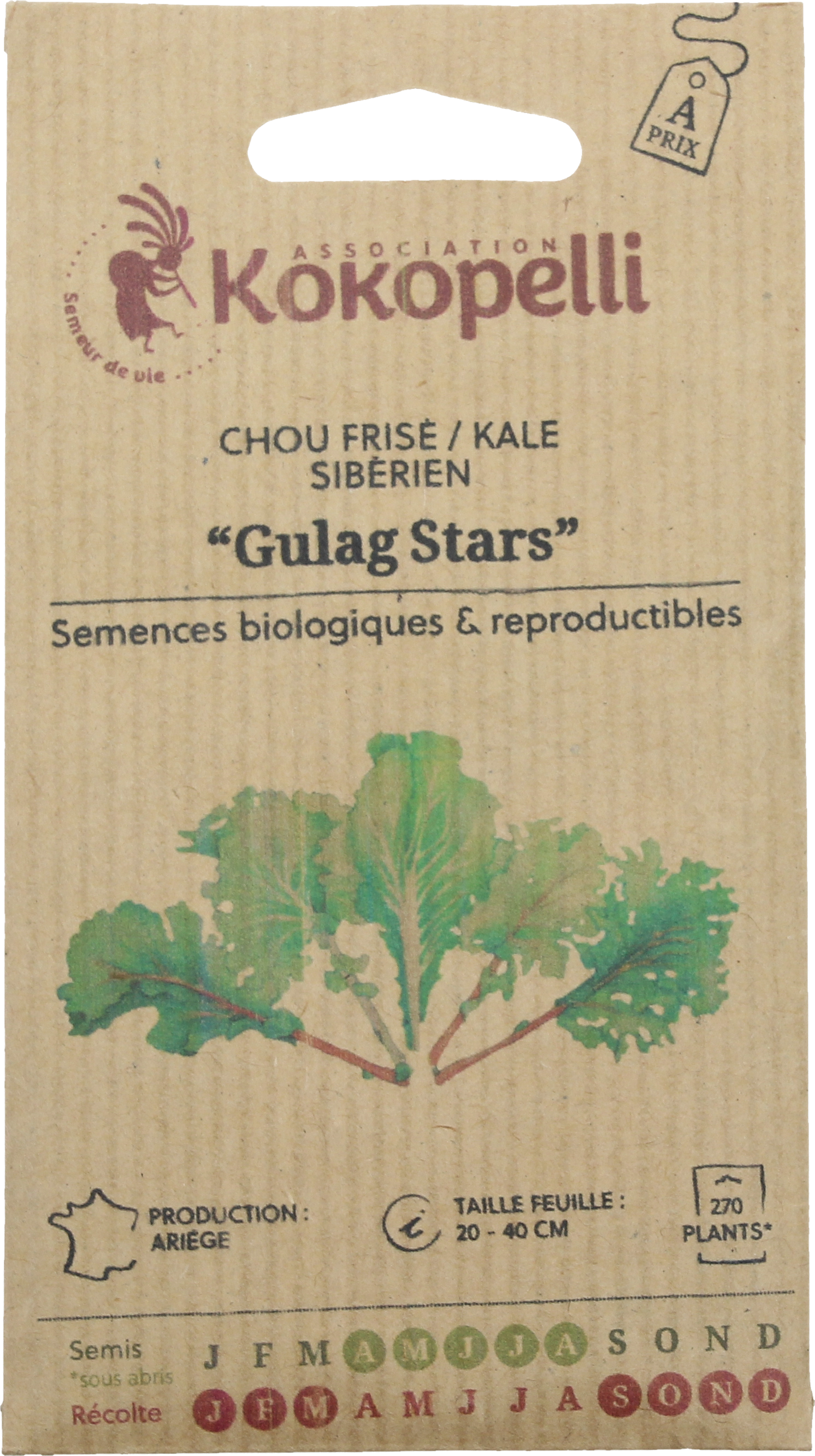 Kadeřávek Gulag Stars zaujme barevně rozmanitými listy od fialové až po zelenou. Je mrazuvzdorný a robustní, takže se hodí pro podzimní a zimní sklizeň. Jeho křehké listy mají všestranné využití, jsou ideální do smoothies, salátů nebo jako příloha k teplým pokrmům.