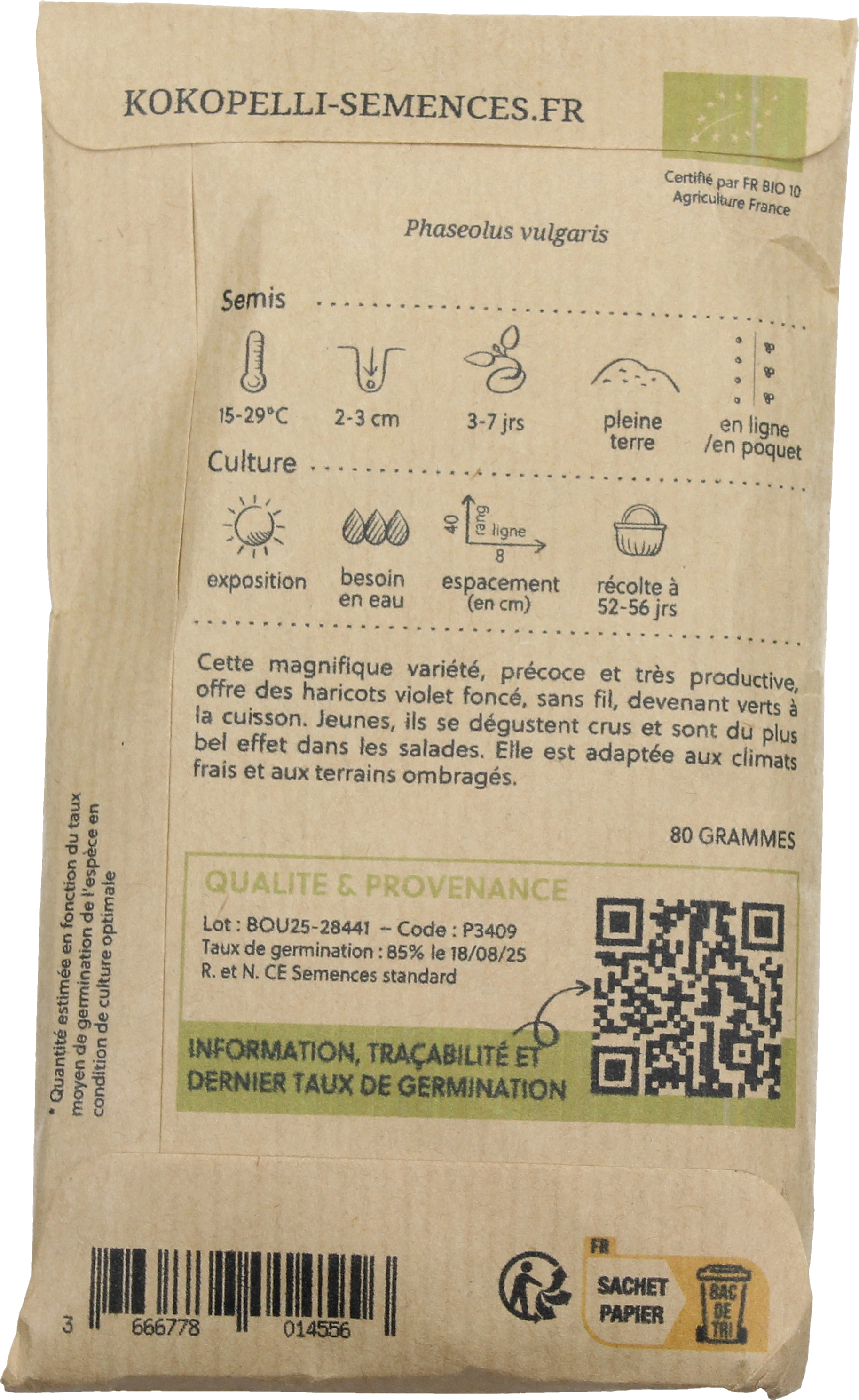 Keříčková fazole Reine des Pourpres je obzvláště dekorativní a výnosná odrůda s tmavě fialovými lusky. Při vaření se fazole zbarví dozelena, ale zachovají si svou jemnou chuť. Mladé lusky jsou křehké a lze je konzumovat i za syrova - ideální pro čerstvé letní saláty. Díky své robustnosti je vhodná i do chladnějších oblastí a polostinných míst v zahradě.