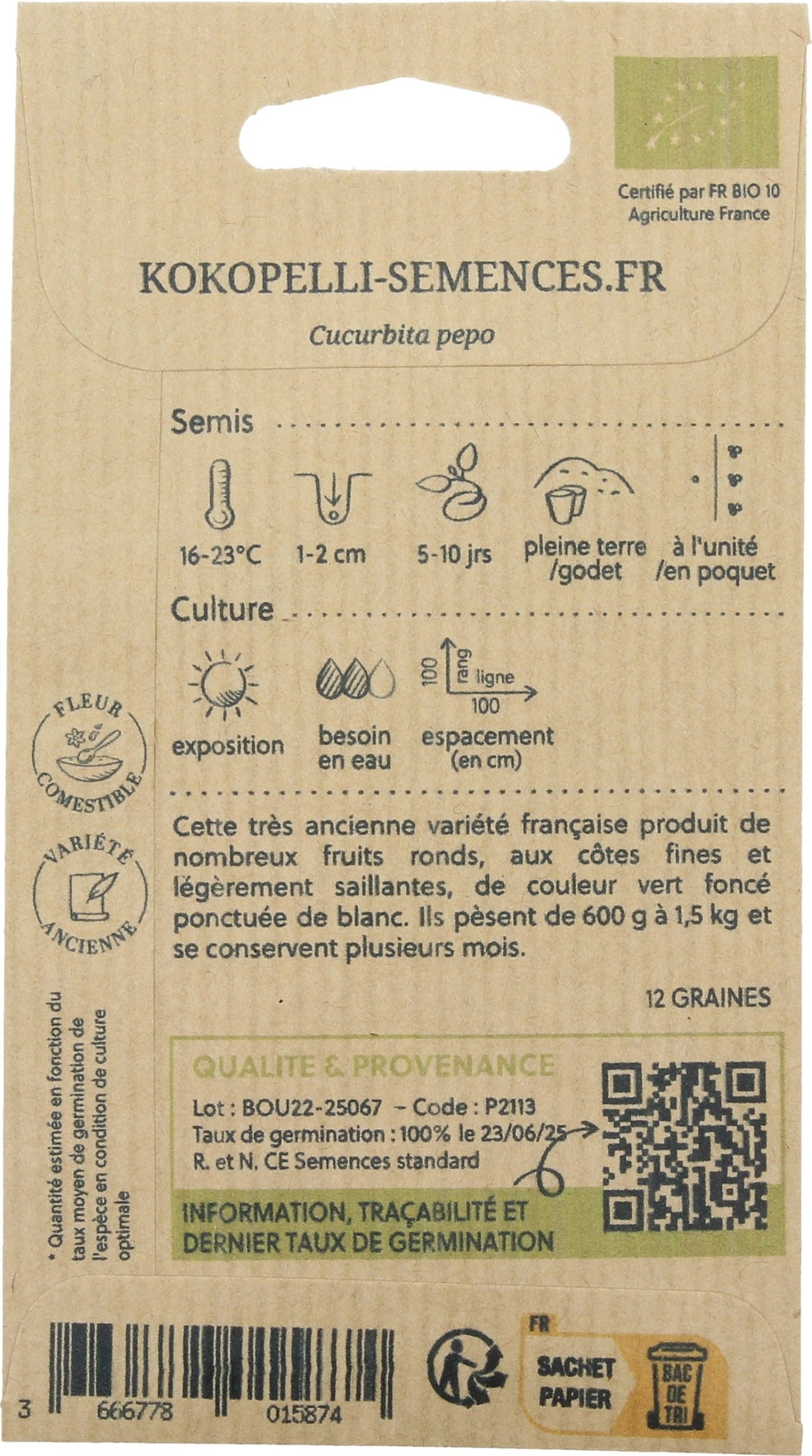 Kokopelli Bio kulatá cuketa z Nice, 12 zrn