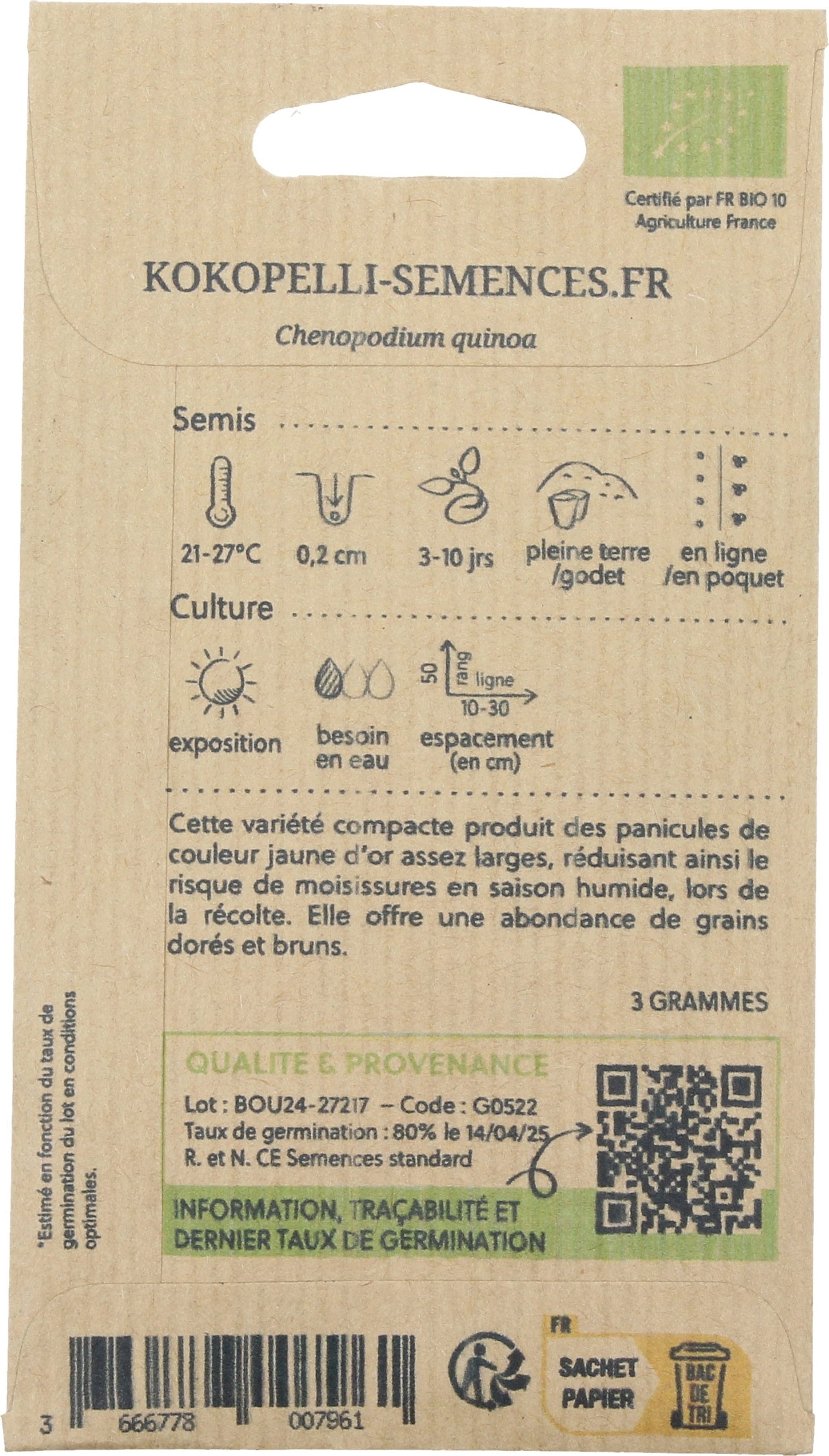 Kokopelli Bio quinoa „Oro de Valle“, 3 g