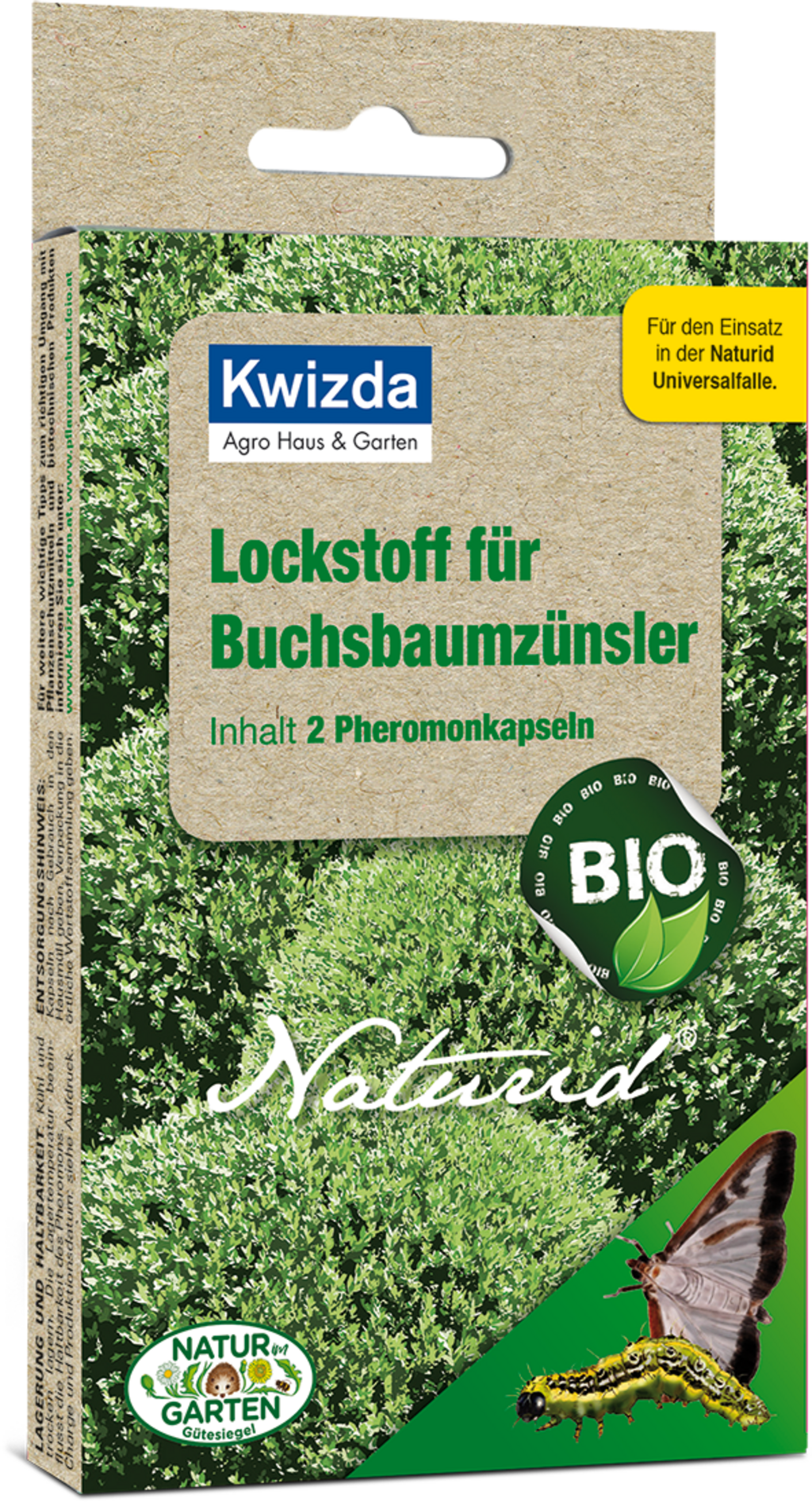 Návnada Naturid na zavíječe zimostrázového se skládá z feromonových kapslí, které cíleně přitahují samce zavíječe zimostrázového. Tím lze účinně omezit rozmnožování škůdců – přirozeně a bez použití chemie.