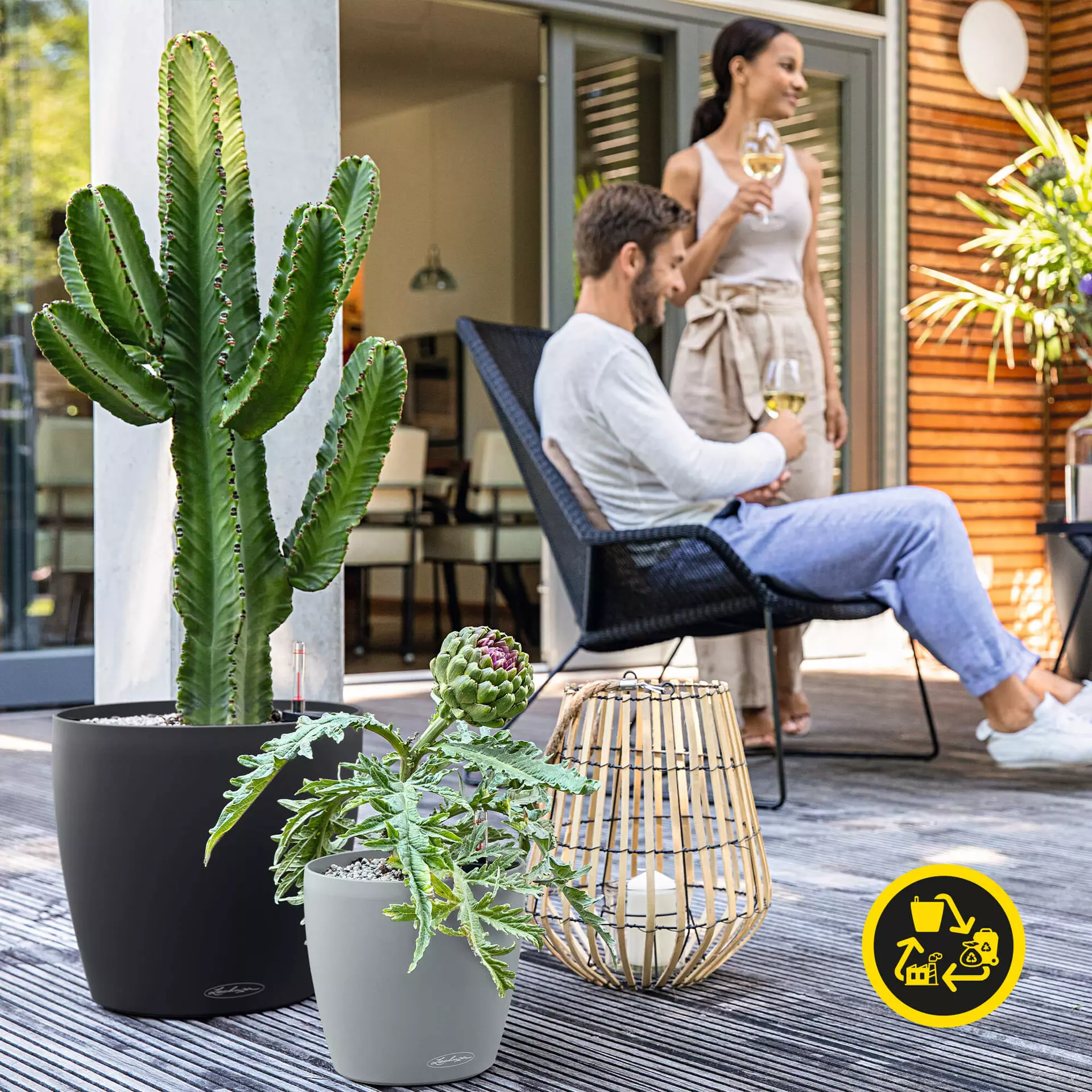 Vlastnosti: odolný vůči UV záření, odolný proti mrazu, se zavlažovacím systémem, nerozbitný, 100 % recyklovatelný, udržitelně vyrobený