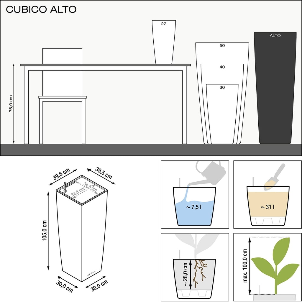 Lechuza Květináč CUBICO ALTO Premium 40, High gloss white