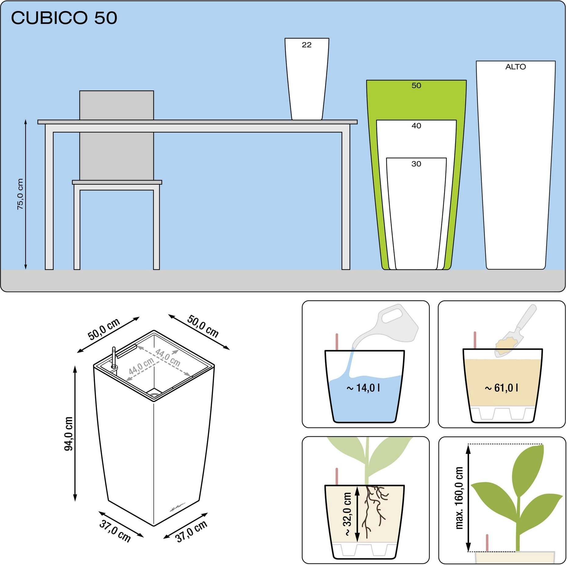 - Rozměry: 50 x 50 x 94 cm