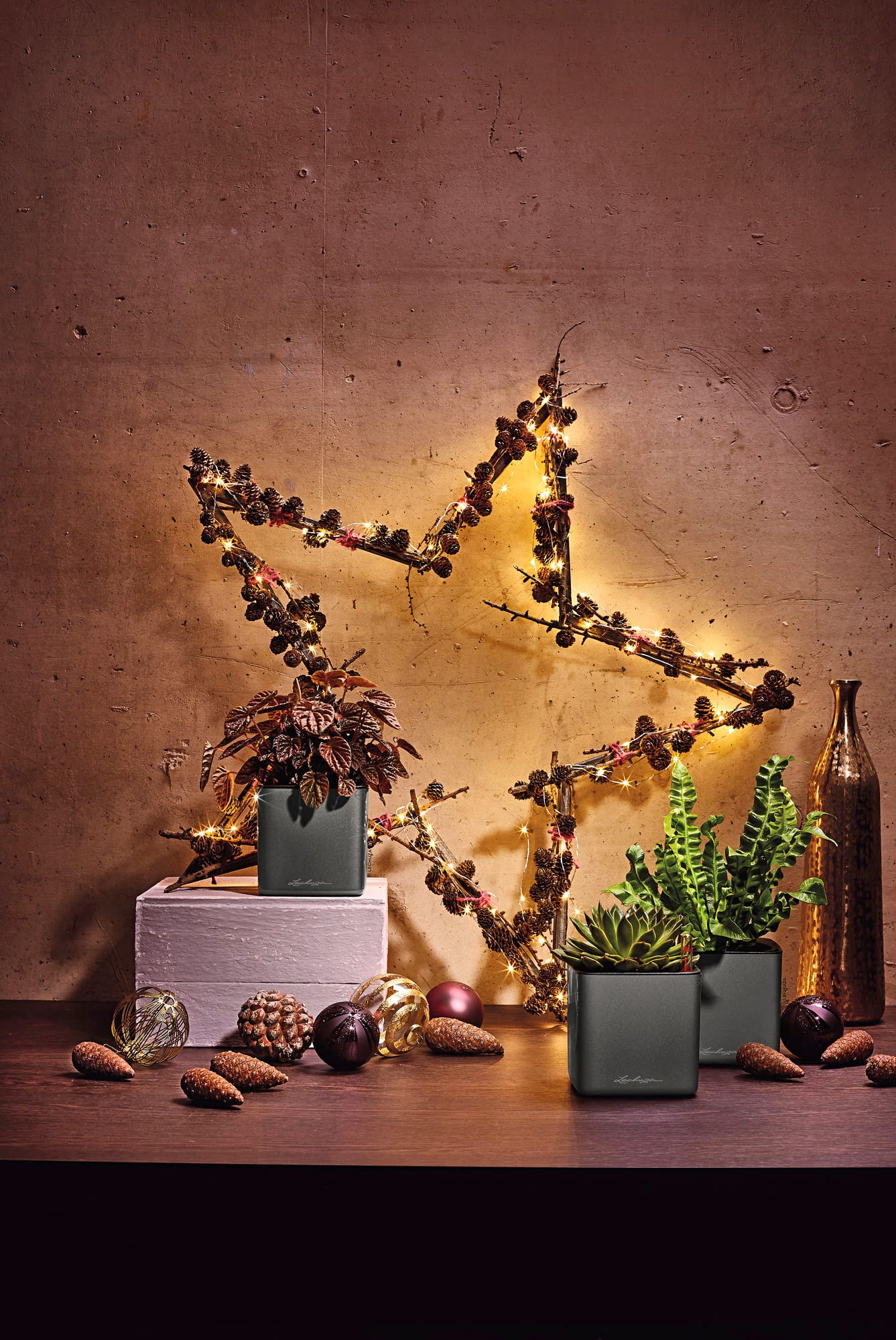 Lechuza Stolní květináč CUBE Premium 14, Smoky diamond highgloss