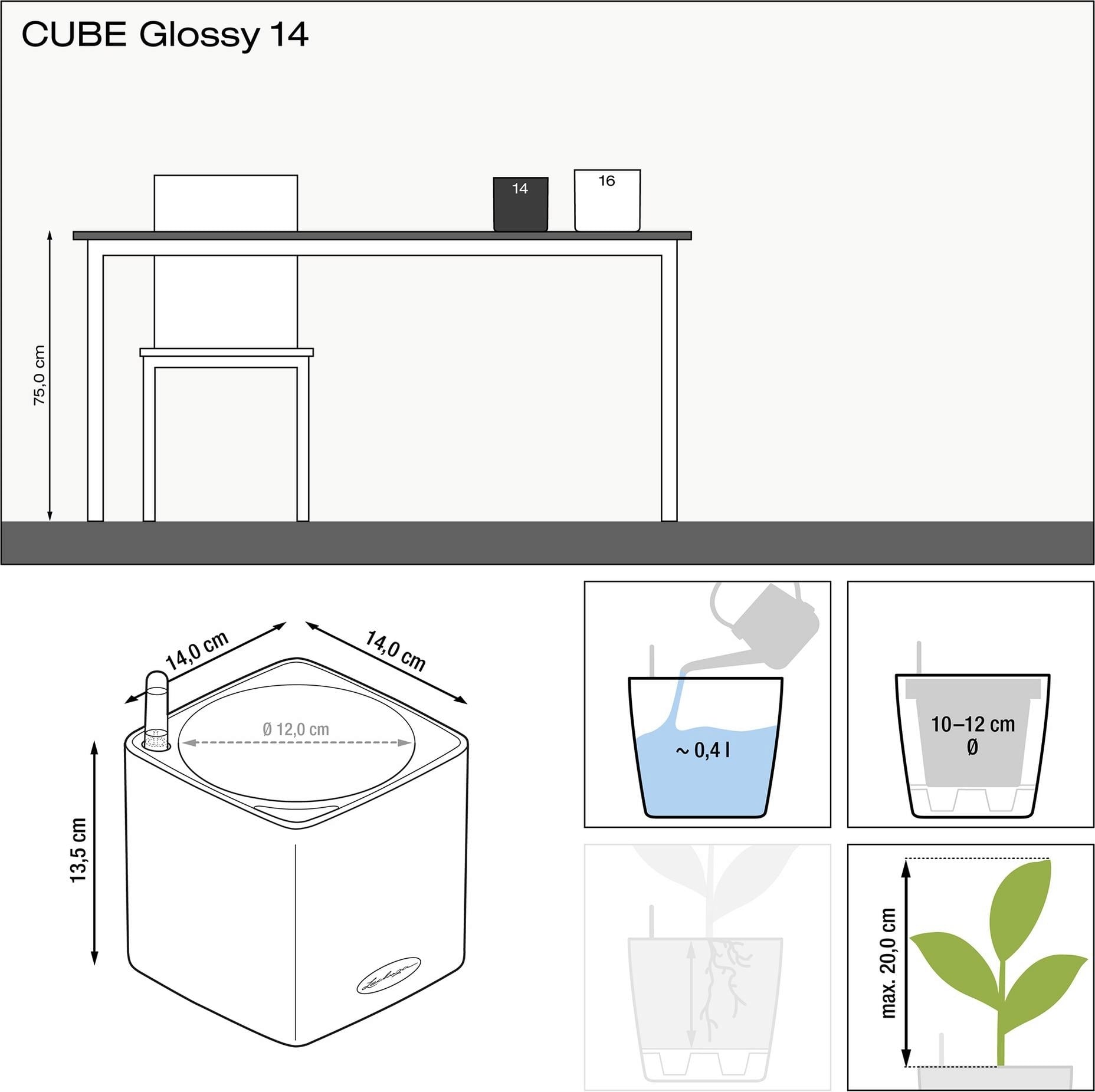 hodnocení pro Lechuza Stolní květináč CUBE Premium 14 (čeština)