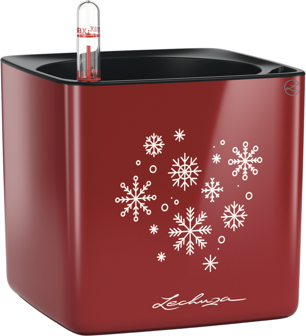 Lechuza Stolní květináč CUBE Premium 14 Snow Scarlet‑rot Highgloss