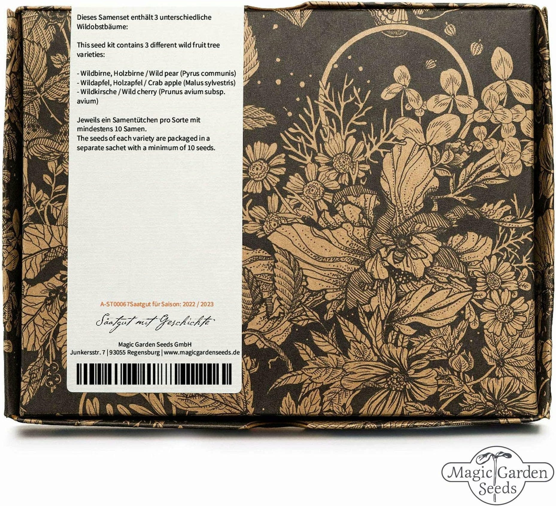 Tato sada obsahuje tři staré odrůdy ovoce v jejich divoké formě - takříkajíc předky našich dnešních pěstovaných jabloní, hrušní a třešní. Staré odrůdy jsou v přírodě k vidění stále vzácněji, přitom jsou pro mnoho zvířat nepostradatelné, protože jim poskytují potravu a úkryt. Živý plot z těchto divokých druhů je proto skutečným požehnáním pro ptáky, ježky a další. Pokud si přejete, můžete plody také dále zpracovat na mošt nebo džem.