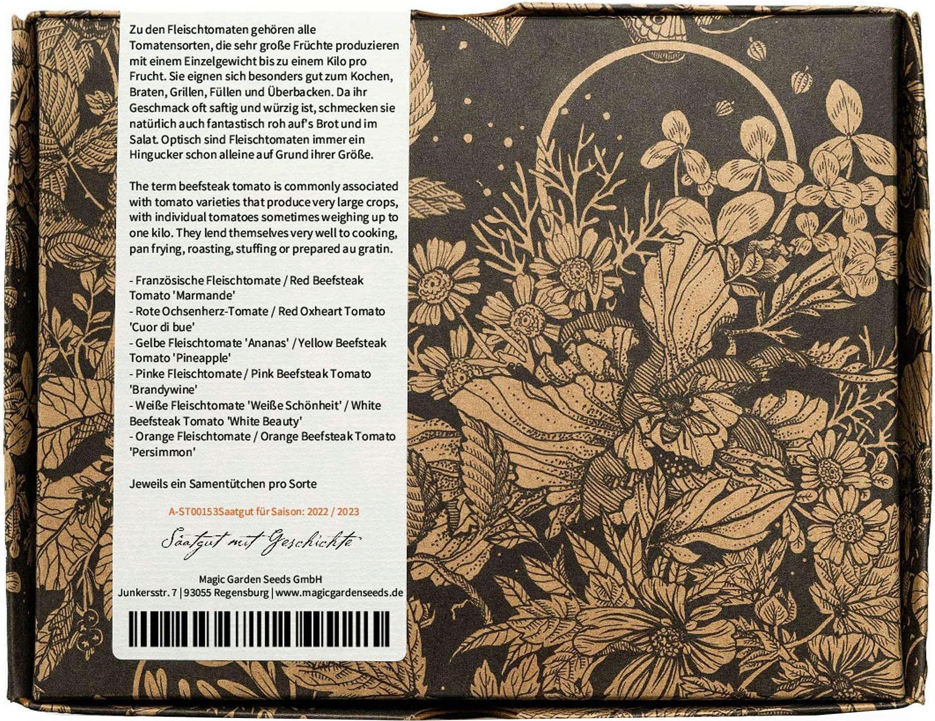 Masitá rajčata patří svou velikostí k impozantním gigantům našich zahrad. Obzvláště vhodná jsou ke grilování, vaření a pečení. Tito kořenění a šťavnatí obři jsou však požitkem i v syrovém stavu a neměli by chybět u žádné svačiny. Tato sada obsahuje šest starých odrůd, které jsou díky svým různým barvám a tvarům skutečnou pastvou pro oči. Naprostá nezbytnost pro sběratele rarit!