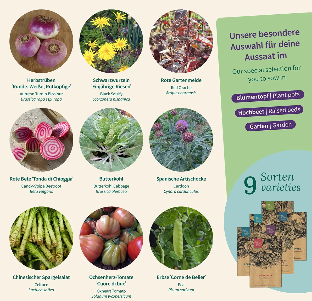 - Včetně digitálního návodu k výsevu v 5 jazycích (DE, EN, FR, ES, IT)